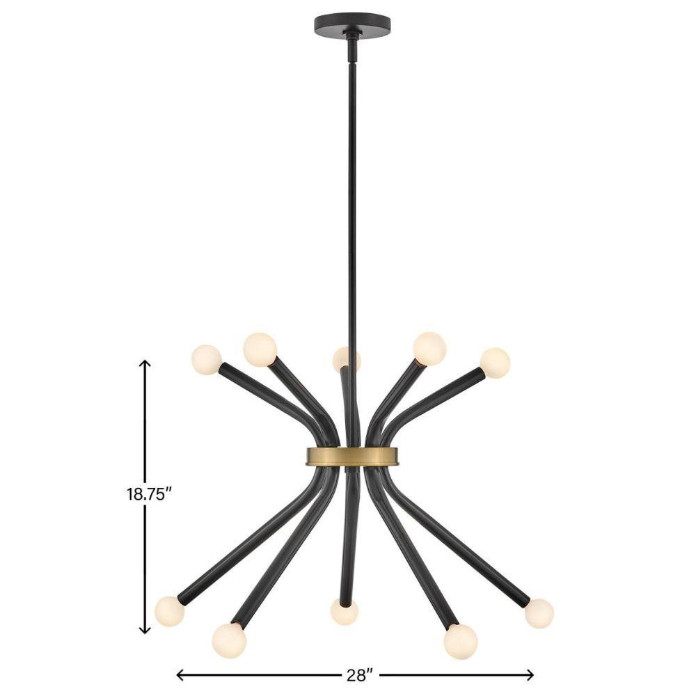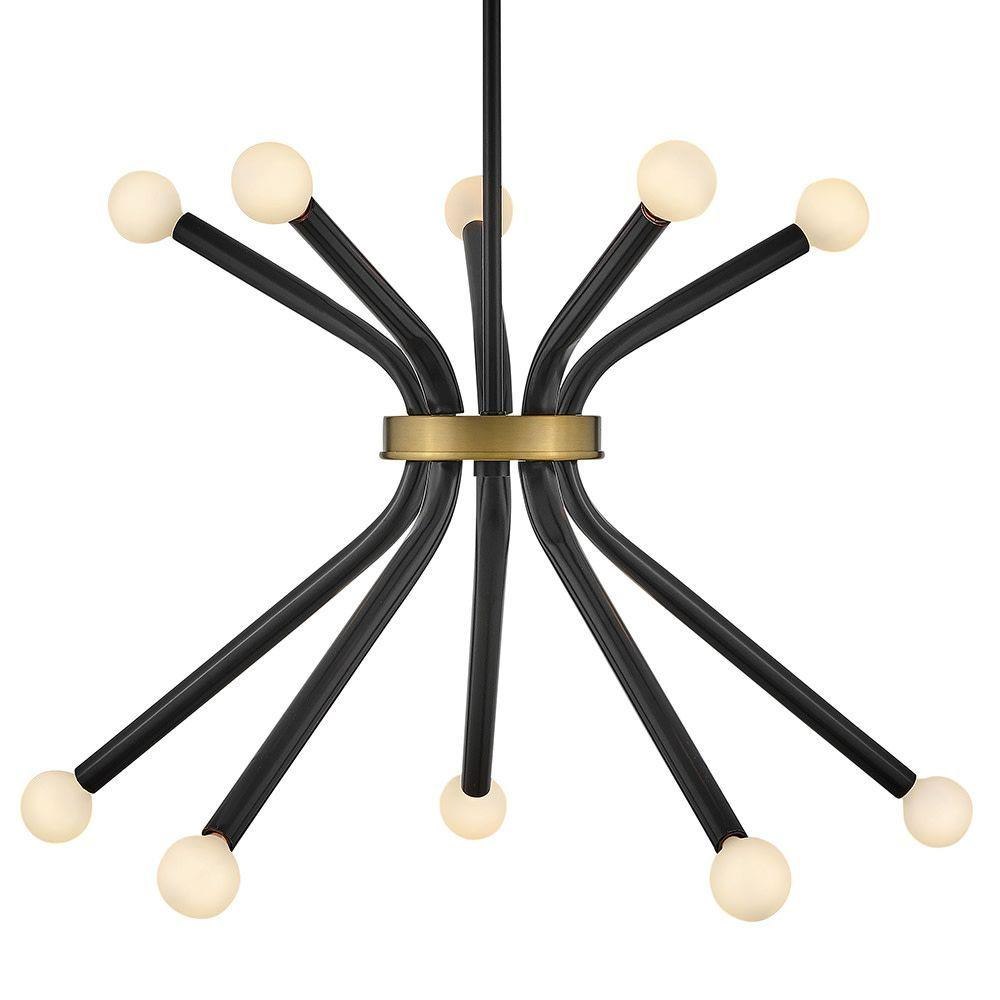 Mid-century modern meets Art Deco in a cool curved silhouette. A fun twist on the iconic Sputnik design, this chic single-tier medium Black chandelier injects a burst of fun into any interior. We recommend G-style or torpedo bulbs to ace Axton’s appeal.Suitable for use in dry (indoor) locations as defined by NEC and CEC. Meets United States UL Underwriters Laboratories & CSA Canadian Standards Association Product Safety Standards | This fixture includes multiple down stems in various lengths to customize the installation height of the fixture, including one 6" stem and two 12" stems. | Please refer to Lark's Warranty for complete product warranty details, some warranty limitations may apply. | Effortlessly cool, this mid-century modern design inspires any space with its chic vintage vibe | This stem hung fixture may be hung on a sloped ceiling | Striking black finish enhances design