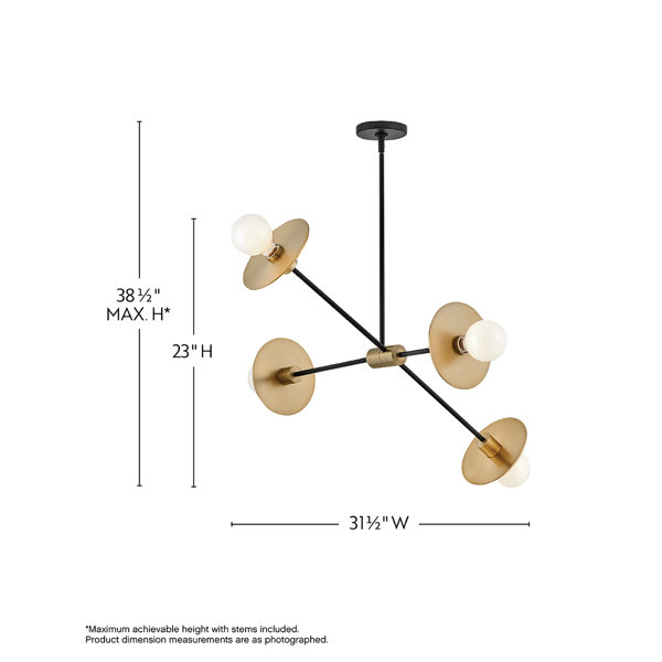 Cupertino lights up a playful twist on modern minimalism. Sleek, simple lines add to the overall style without getting in the way of functionality. Enjoy ample versatility with arms that articulate and a convertible design that means it can be hung as a chandelier or semi-flush mount. Cupertino brings personality with a lacquered brass finish that complements the black fabric-covered cord.