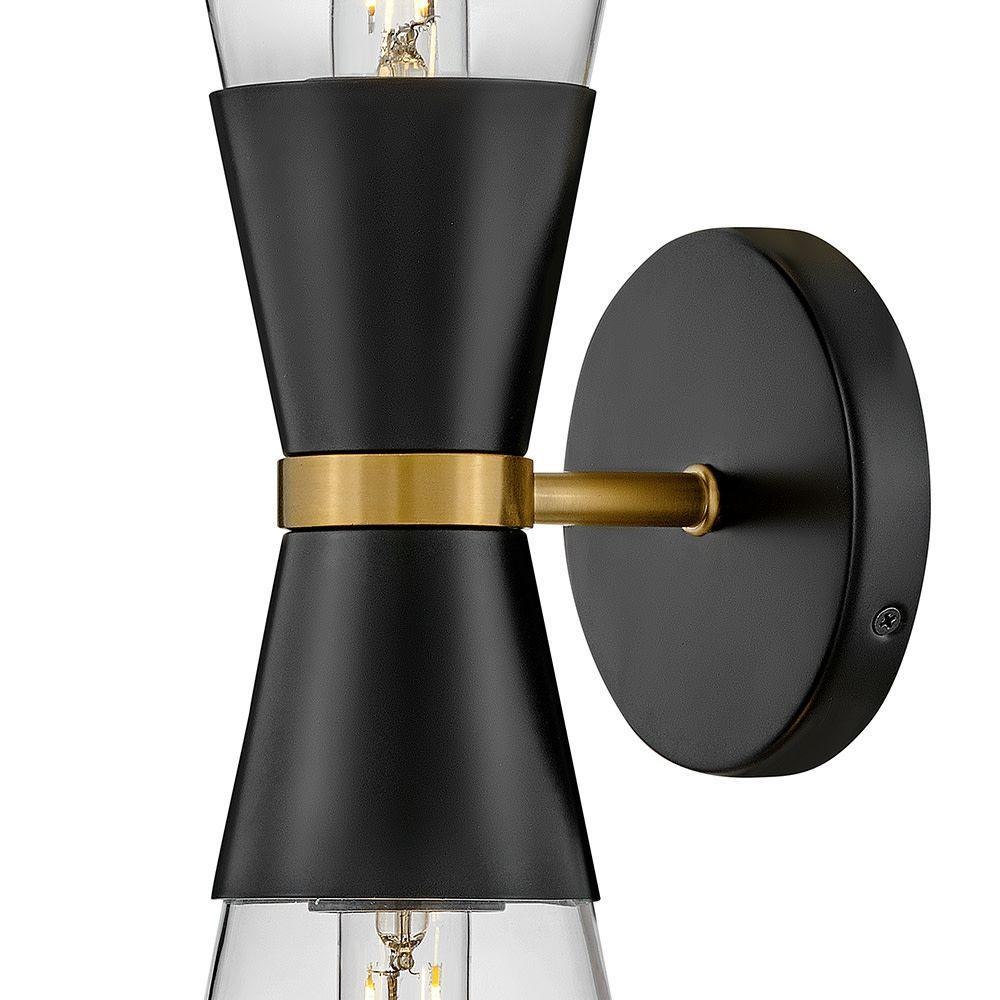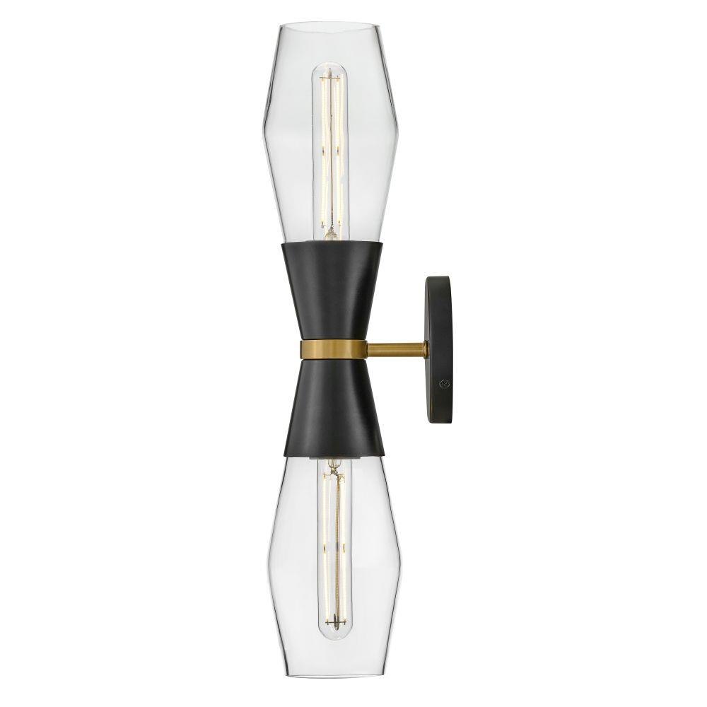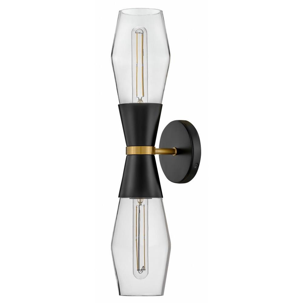 A geometric gem, Livie cleverly mixes sleek lines with an angular shape for a contemporary cool look that makes itself at home anywhere. Clear glass unites with spun metal elements in striking Black or luxe Lacquered Brass finish options to boldly underscore Livie’s modern edge.