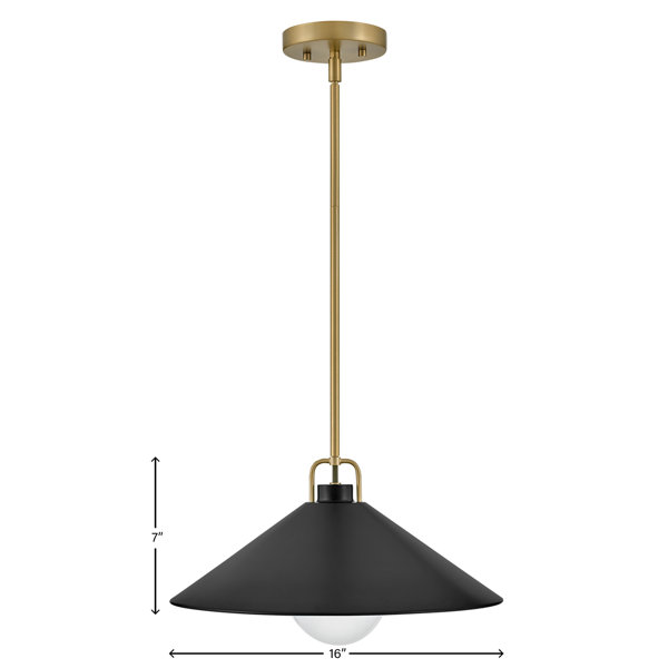 This classic pendant complements any decor, space, and structure. With a sleek metal Coolie style outer shade the added pop of a crisp White interior boosts illumination. Versatility galore - this fixture includes a Lacquered Brass canopy and down rods that reach a maximum height of 38.5" and can be hung on even or sloped ceilings (up to 90°). In Black, Lacquered Brass, Matte Navy, or Sage Green, Milo elevates your space with classic design elements reworked in new proportions.
