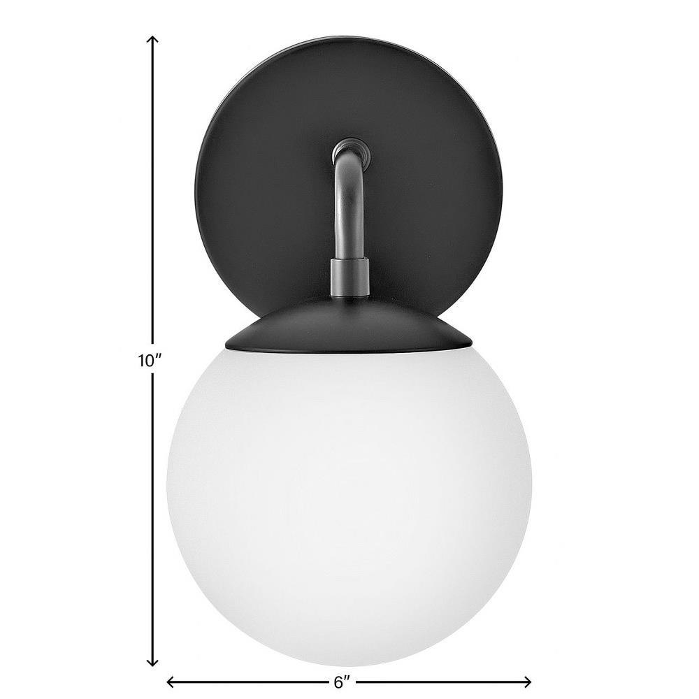 Round out your space with Julep's modern simplicity. Selfie-approved, this 1-light sconce emphasizes the smooth curves of the etched opal glass globe to deliver the perfect amount of diffused ambient light. Easy to install up or down, Julep’s matte Black finish will perk up powder and primary bathrooms alike and adds chic character to other intimate spaces throughout the home.