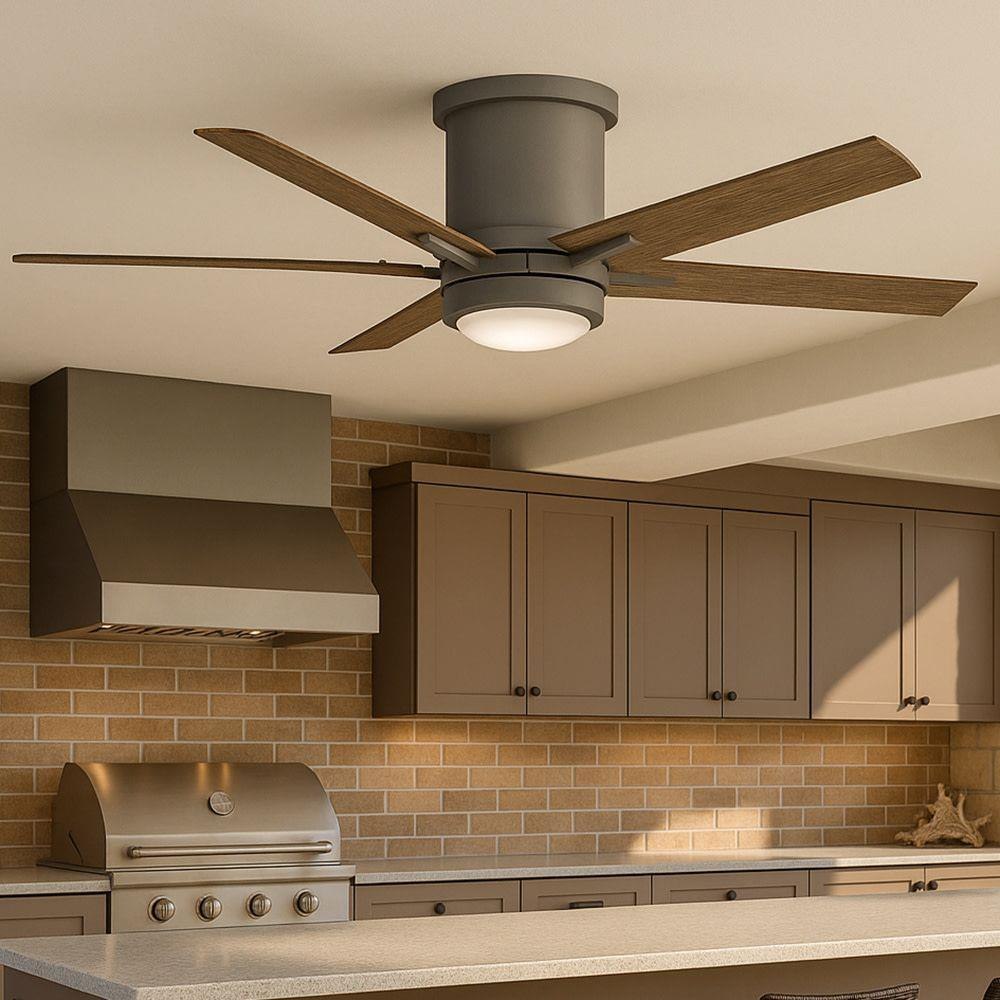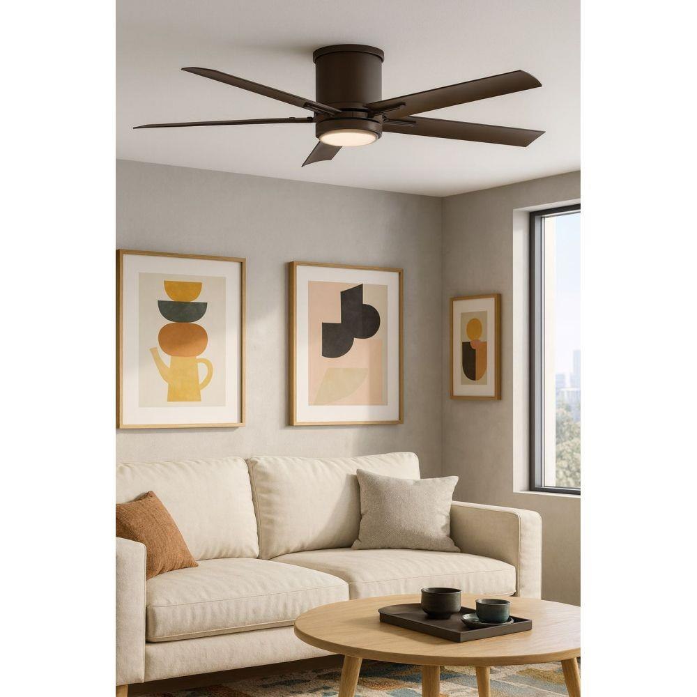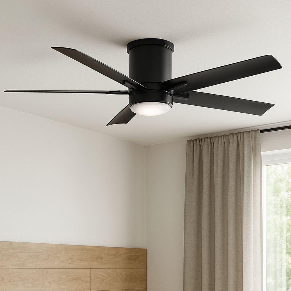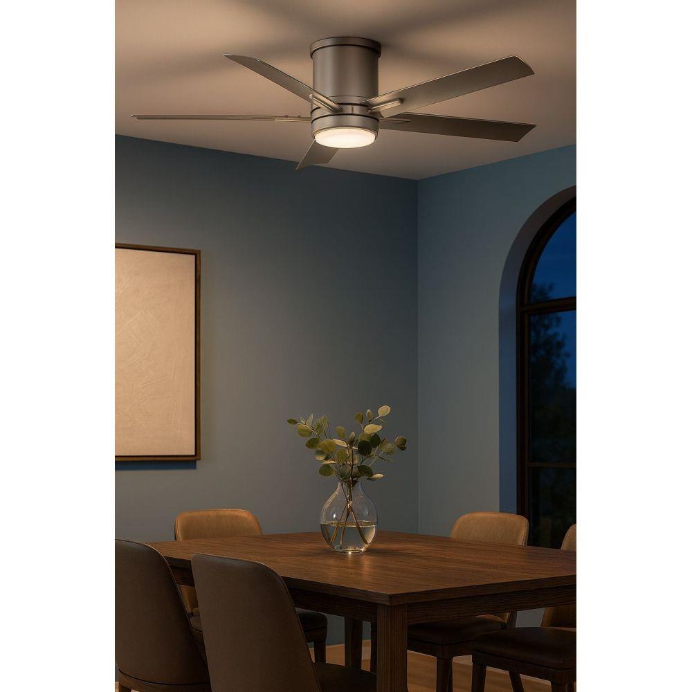 Vail Flush offers a transitional design with gently curved blades and an array of finish options, while its integrated LED and DC motor technology deliver excellent energy efficiency. Vail Flush is so versatile, it can be used for both indoor and outdoor spaces.Features and Benefits: