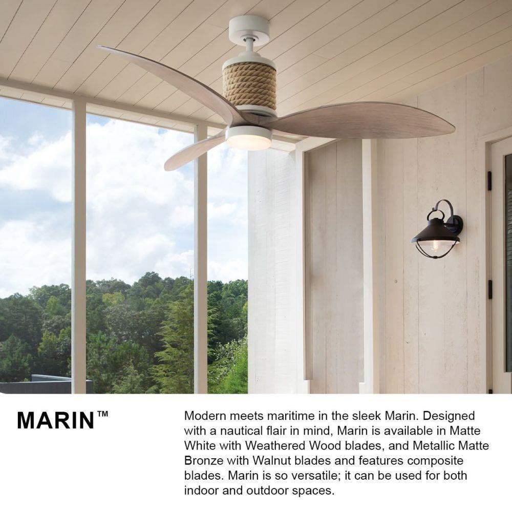 Modern meets maritime in the sleek Marin. Designed with a nautical flair in mind, Marin is available in a Matte White, Metallic Matte Bronze or Matte Black finish and features composite blades. Marin is so versatile, it can be used for both indoor and outdoor spaces.Features and Benefits: