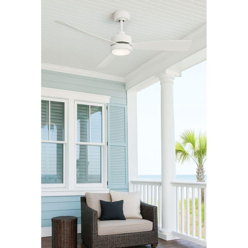 Add sleek functionality to your space with Iver, a modern, Scandinavian beauty. The slightly curved, tapered blades focus on simple, clean lines while the warm dim LED light provides a functional glow. Wet-rated and part of the Coastal Elements Collection, this family of fans features composite materials that are coated with an anti-fading finish for maximum durability inside or out. Iver is equipped with a 6-speed DC motor that is WiFi enabled and ready to connect right out of the box. Operated by the HIRO control or WiFi compatible with the Hinkley app. For lower ceilings, a flush mount kit is included for easy customization.
