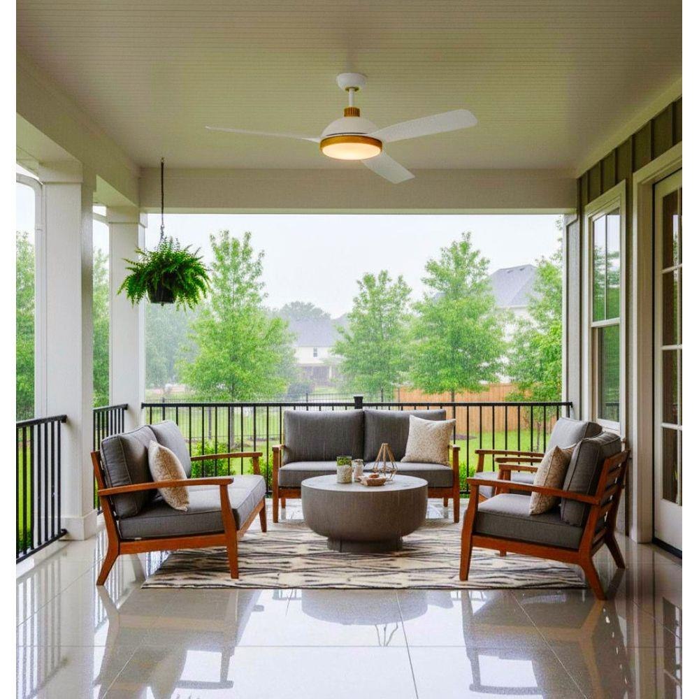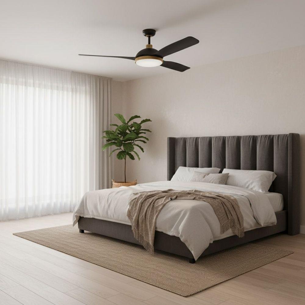 Featuring unique, upwardly curved blades complemented by an exaggerated central light, Alba’s modern look strikes a perfect balance between style and function. Its damp-rated design with integrated LEDs is suitable for both interior and covered outdoor areas. Equipped with a 6-speed DC motor that is WiFi enabled and ready to connect right out of the box. Operated by the HIRO control or WiFi compatible with the Hinkley App.