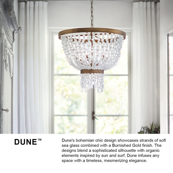 This wall sconce brings Boho Chic into your home. Hand-strung strands of Soft White Sea Glass, individually hung from a Burnished Gold halo atop the fixture with a glass top. Behind the carefree sea glass fringe is a socket for a 10w LED medium bulb (not included), affixed to the flush-mounted 4.5-in W X 14-in H backplate with hidden mounting hardware. A delicate wall fixture that adds a decorative element to bedrooms, home offices, living rooms, kitchens, etc.