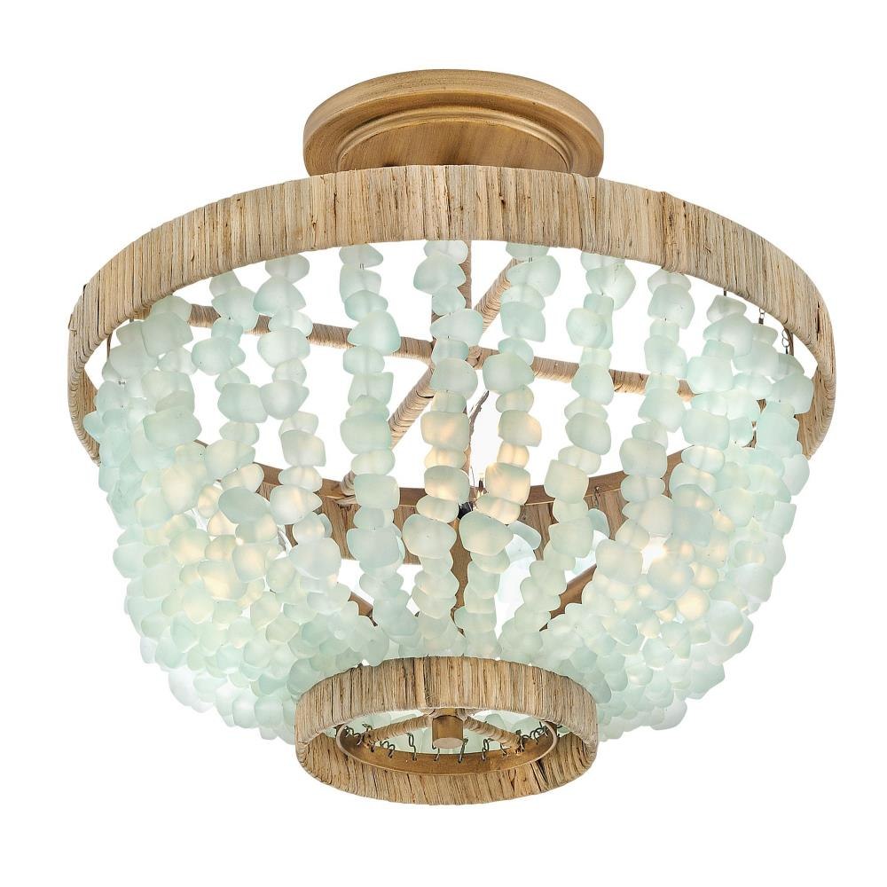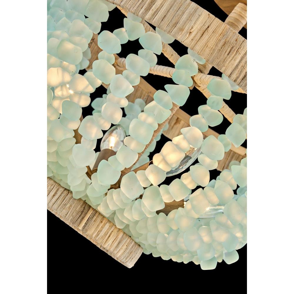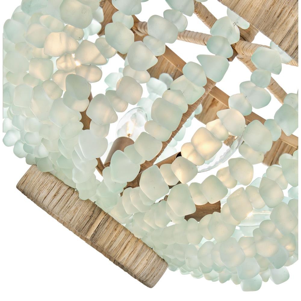 Dune's bohemian chic design showcases strands of soft sea glass combined with a Burnished Gold finish. The designs blend a sophisticated silhouette with organic elements inspired by sun and surf. Dune infuses any space with timeless, mesmerizing elegance.