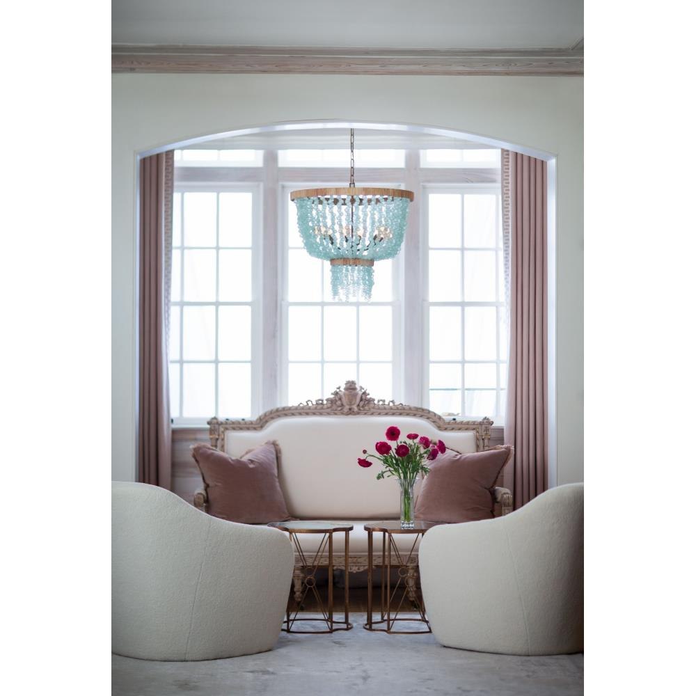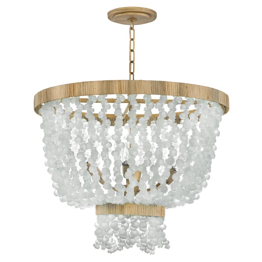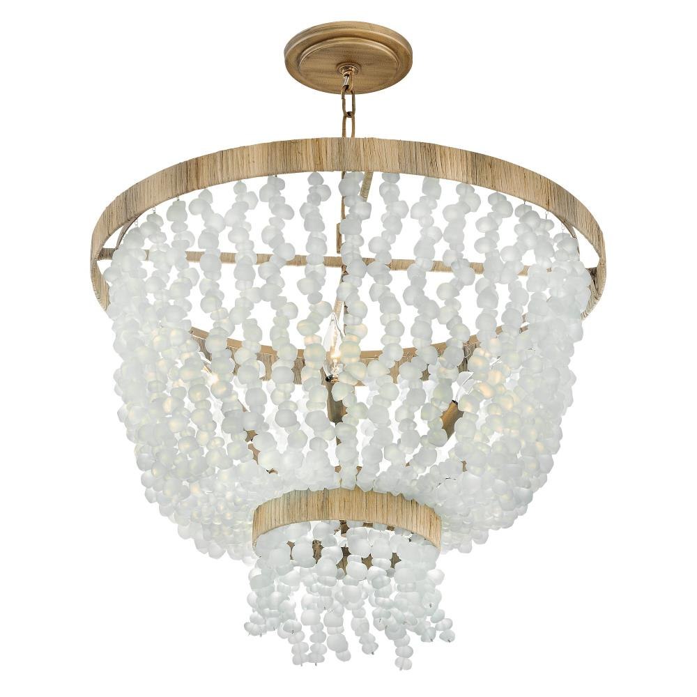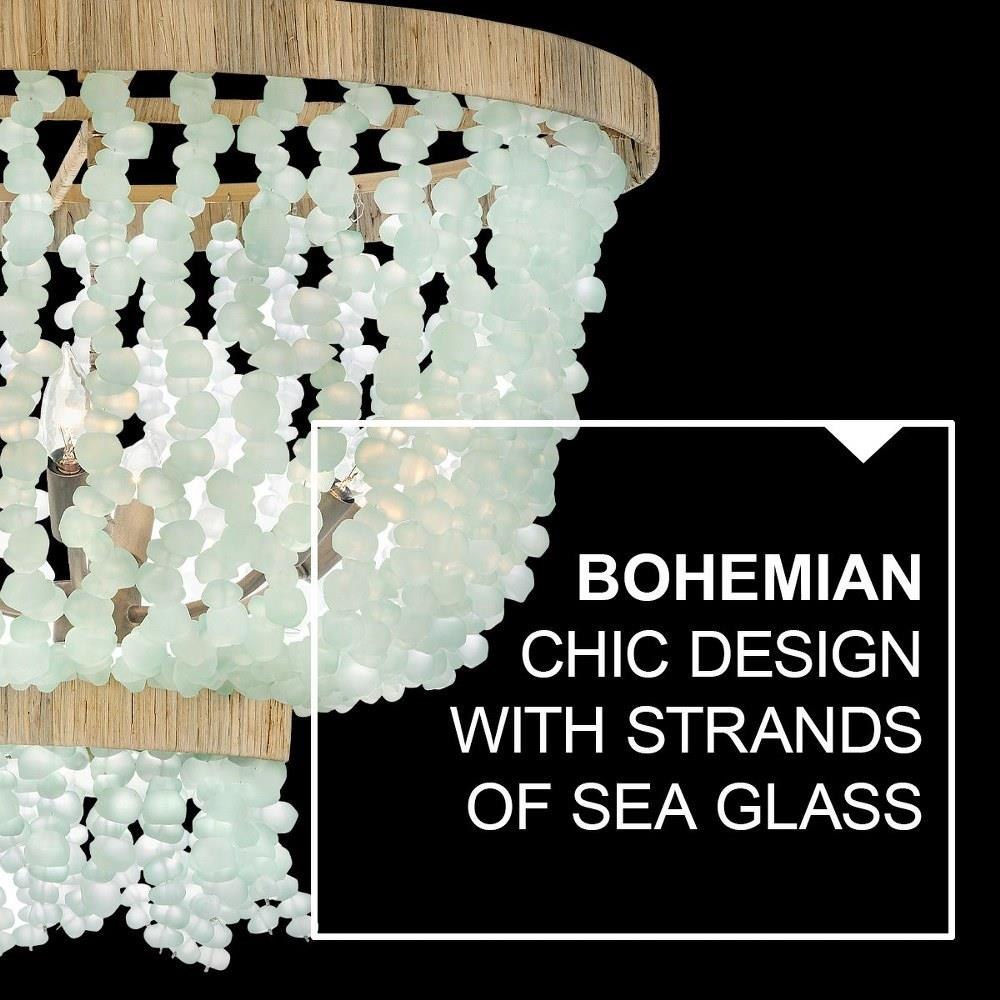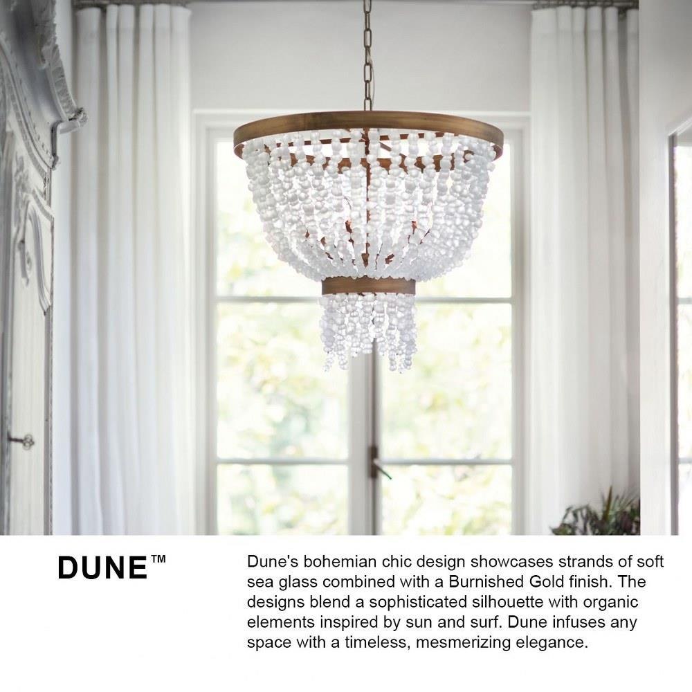Dune's bohemian chic design showcases strands of soft sea glass combined with a Burnished Gold finish. The designs blend a sophisticated silhouette with organic elements inspired by sun and surf. Dune infuses any space with timeless, mesmerizing elegance.