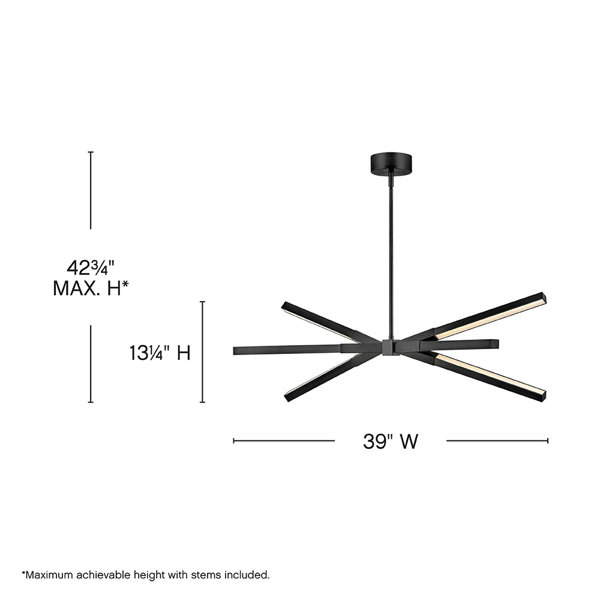 This fixture includes multiple down stems in various lengths to customize the installation height of the fixture, including one 6" stem and two 12" stems.