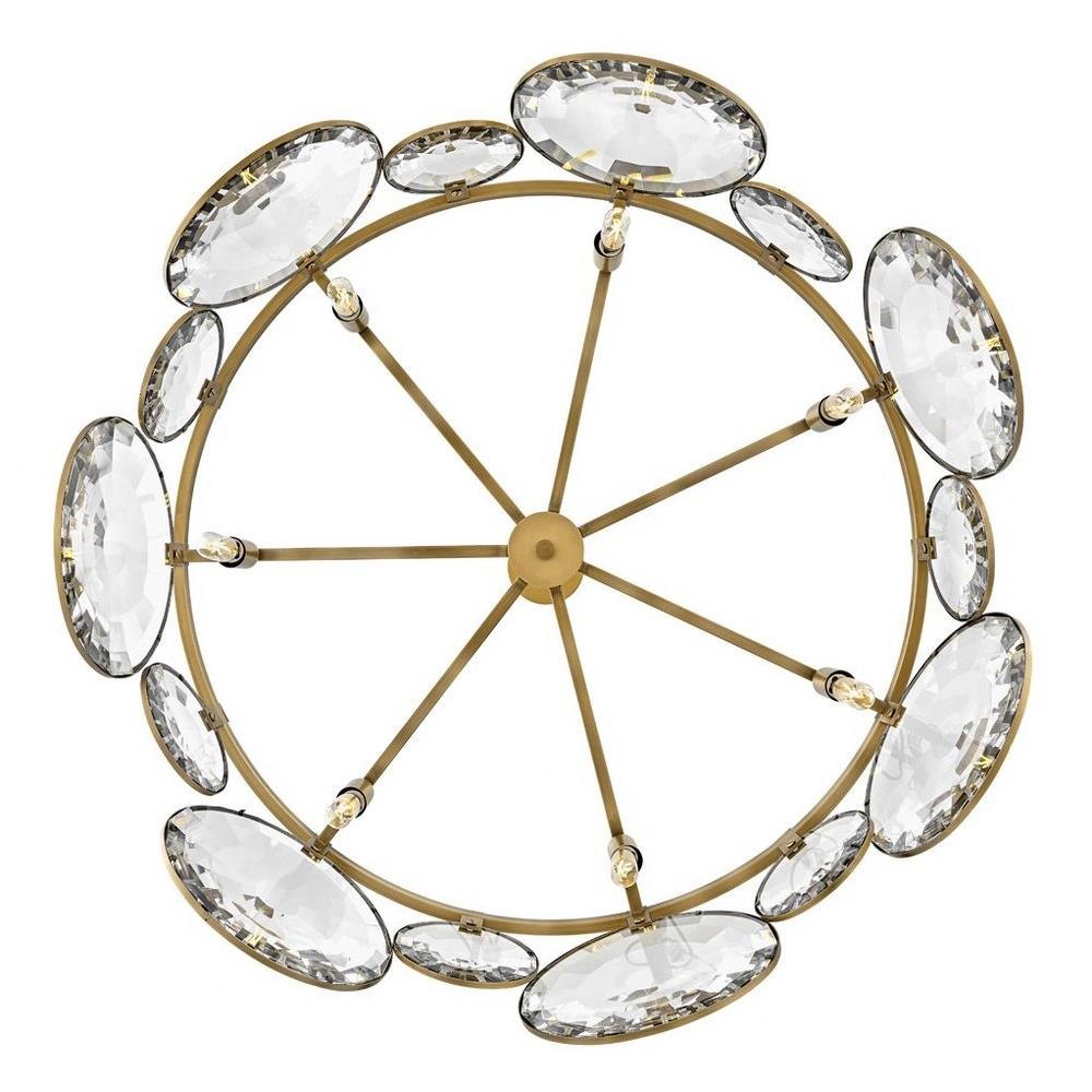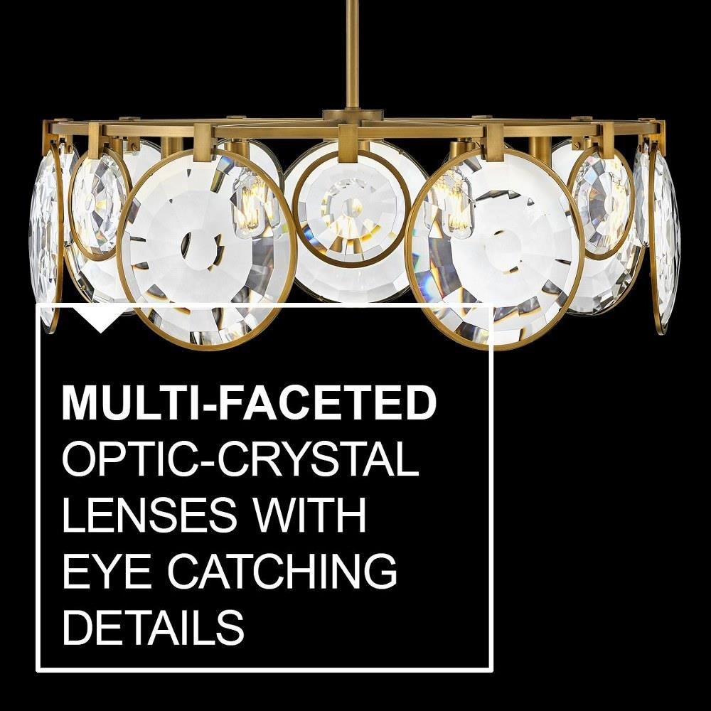 Nala is striking from any angle with a traditional silhouette and elegant eye-catching details. Multi-faceted, optic-crystal lenses surround the circular frame and attach with cast clips in Heritage Brass and Black finishes.