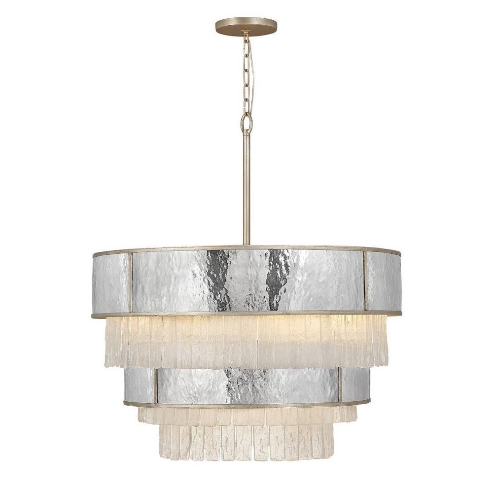 Reverie features a fanciful combination of finishes and shapes to create an opulent transitional silhouette. The robust, hammered stainless steel drum encompasses the textured crystal accents, which create a stunning profile from below. Metal binding adds an artisan touch that completes the look. This chain or cable hung fixture may be installed on any sloped ceiling. Suitable for use in dry (indoor) locations as defined by NEC and CEC. Meets United States UL Underwriters Laboratories & CSA Canadian Standards Association Product Safety Standards Striking and glamorous silhouette with luxe details and a rich finish makes a dramatic statement Luxurious gold finish with opulent sheen.