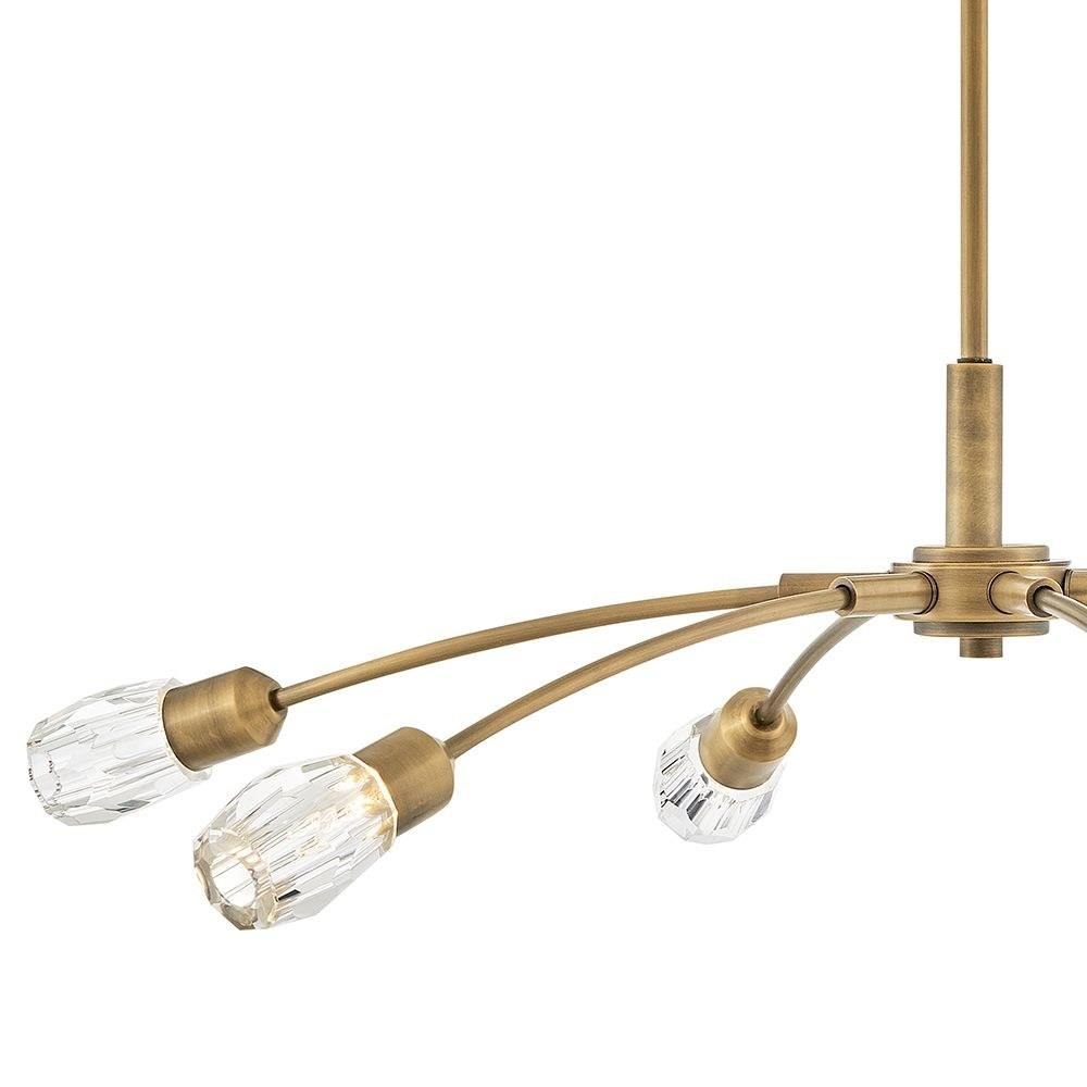 Atera meets at the corner of transitional and modern design to bring a breath of freshness into any space. The low-profile look has a high impact on style, with outreaching arms capped with elegant cut crystals.