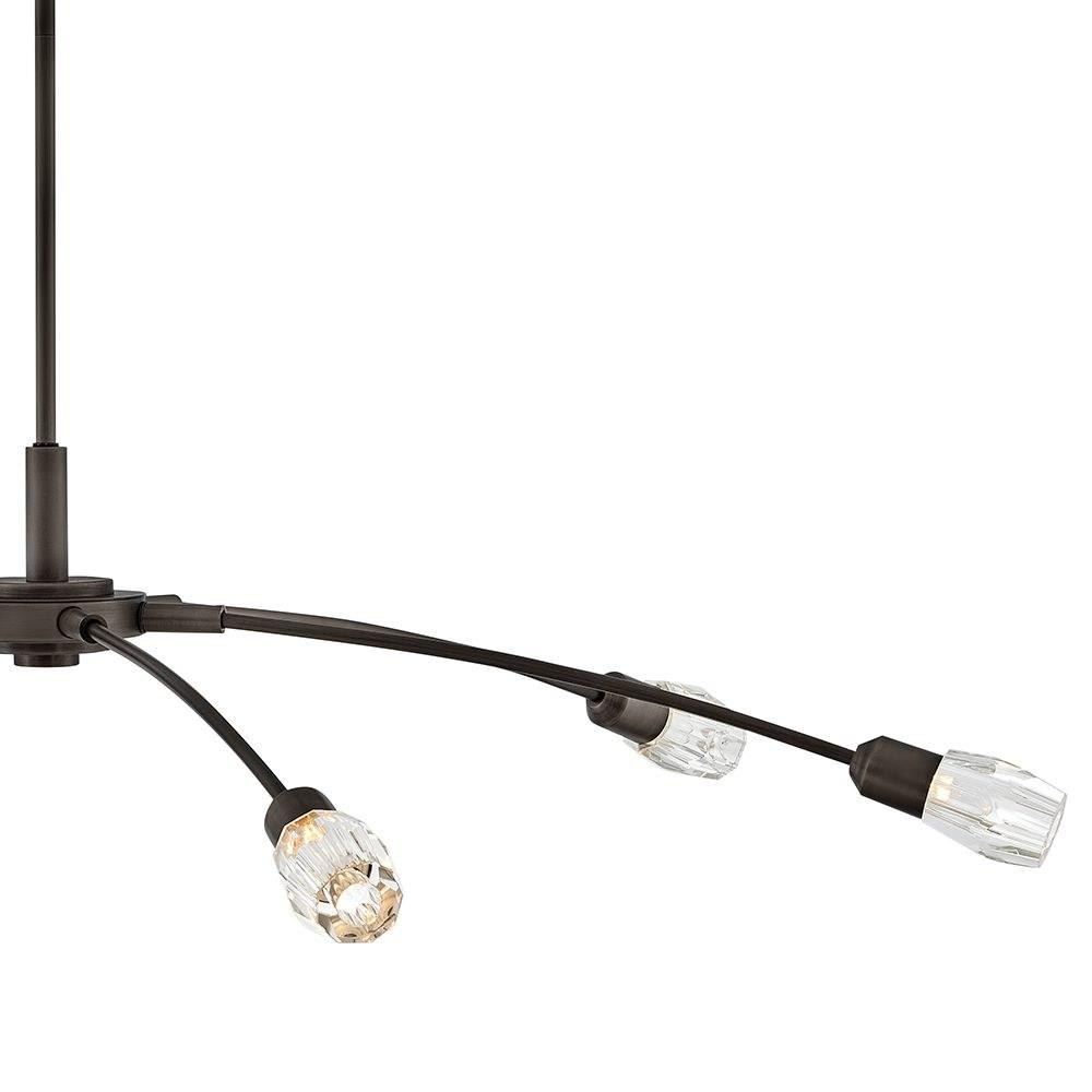 Atera meets at the corner of transitional and modern design to bring a breath of freshness into any space. The low-profile look has a high impact on style, with outreaching arms capped with elegant cut crystals.