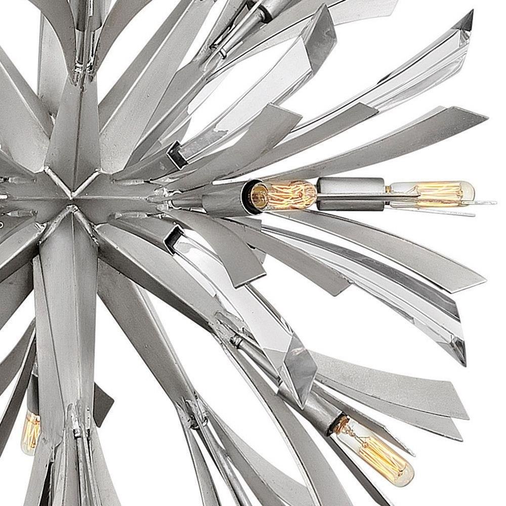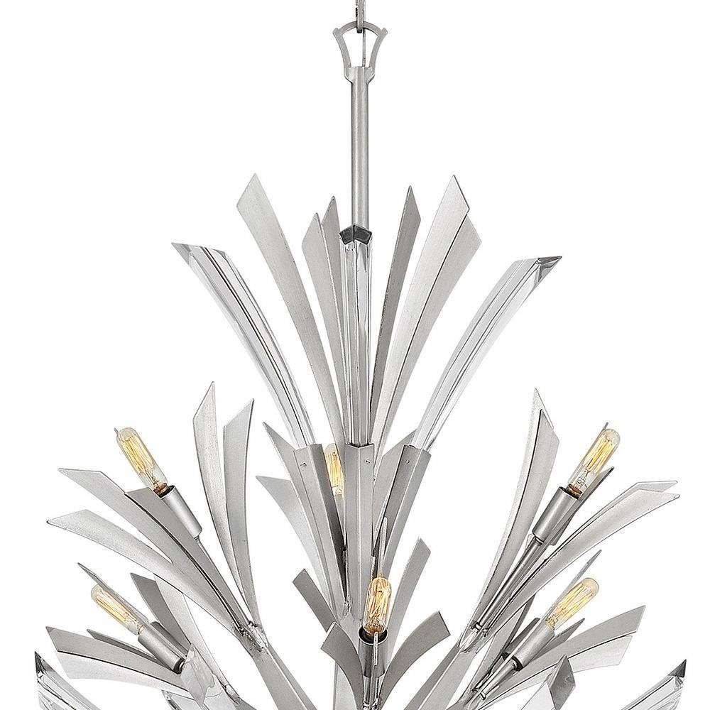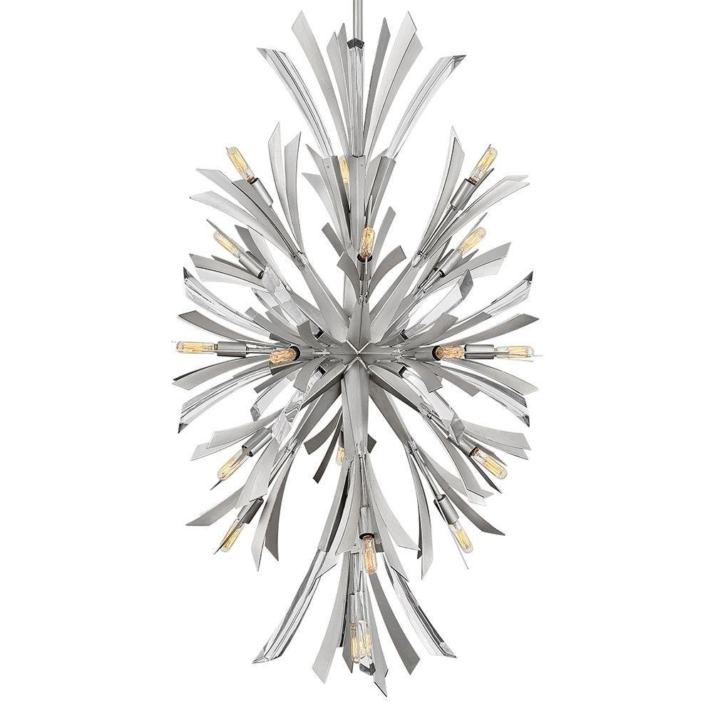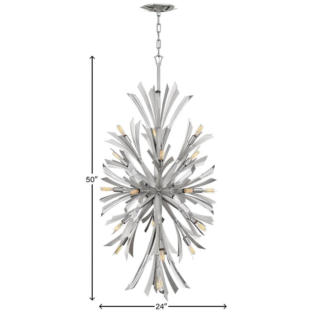 Vida's modern design bursts with a flourishing style that is both highly dramatic and finely sculpted. A statement piece with crystal accents and unique canopy detailing, Vida injects a thrilling dash of contemporary inspiration to its surroundings in a Burnished Gold or Glacial finish.