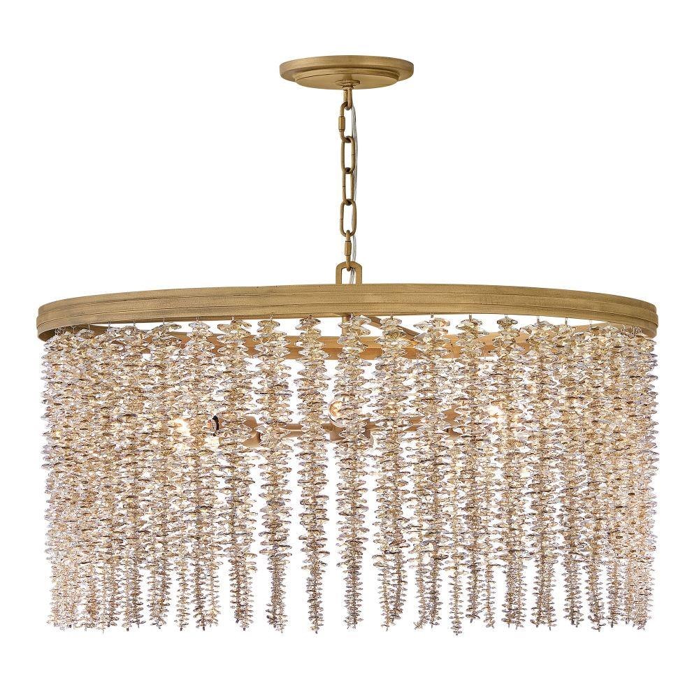 Dripping with glamour, Rubina’s magnificent shade is crafted from individually strung strands of sparkling crystal. A traditional tiered frame accentuates every beautiful refraction with its Burnished Gold finish.
