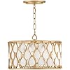 • Radiates from Within: Warm, lustrous Piastra Gold finish sets the stage for a perimeter of natural alabaster stones in between a delicate latticework pattern