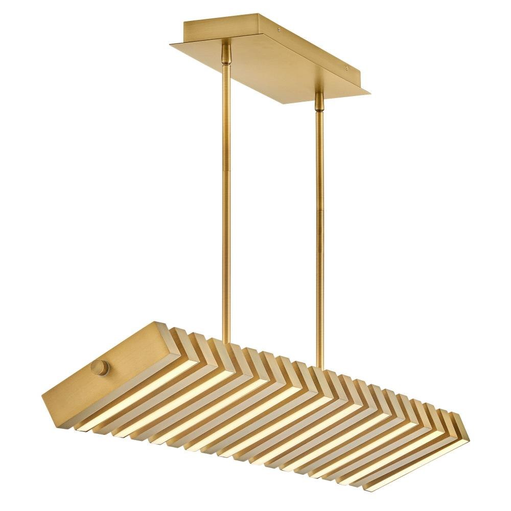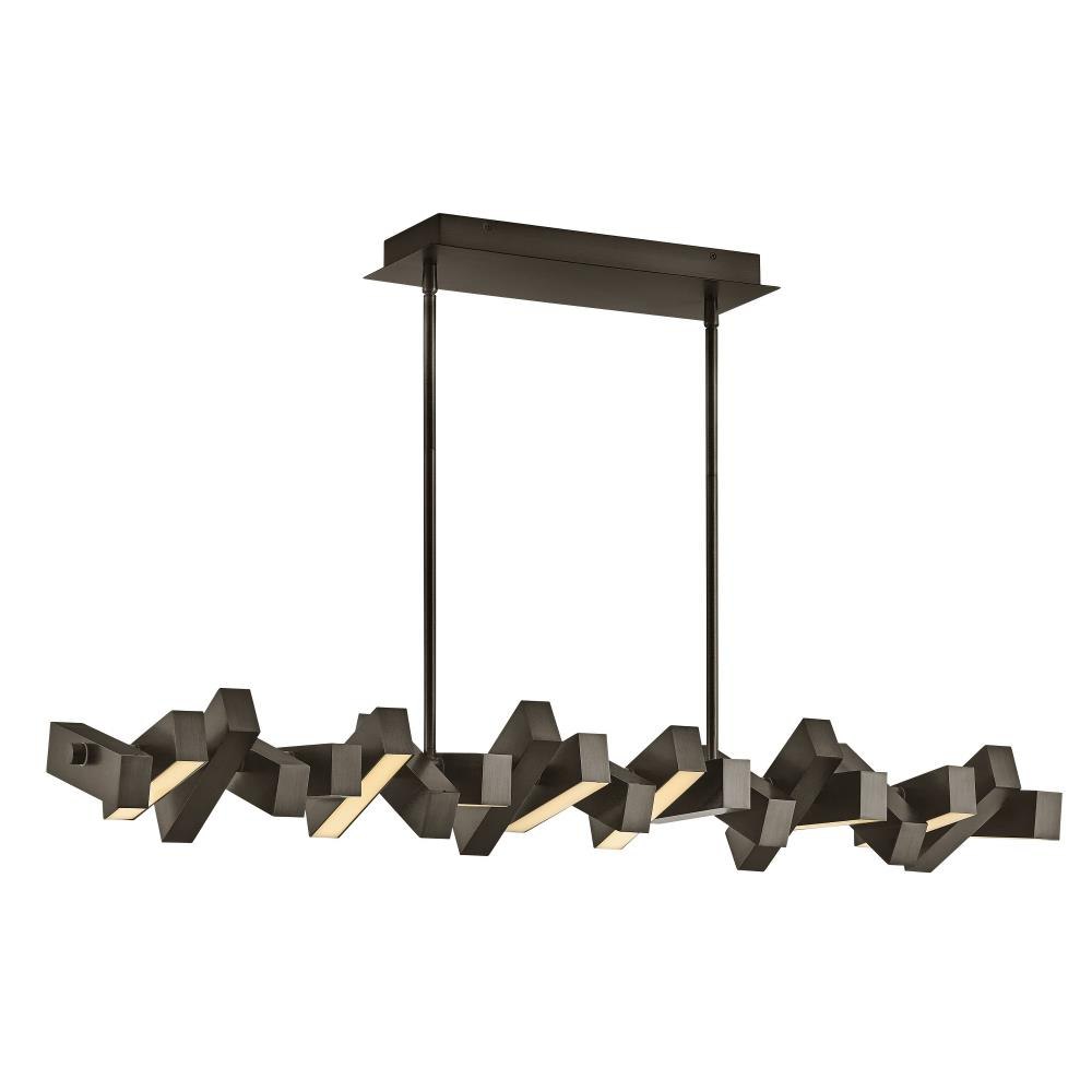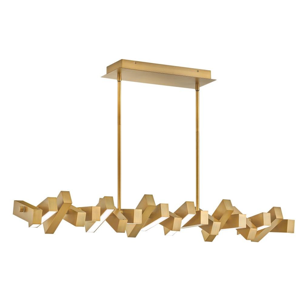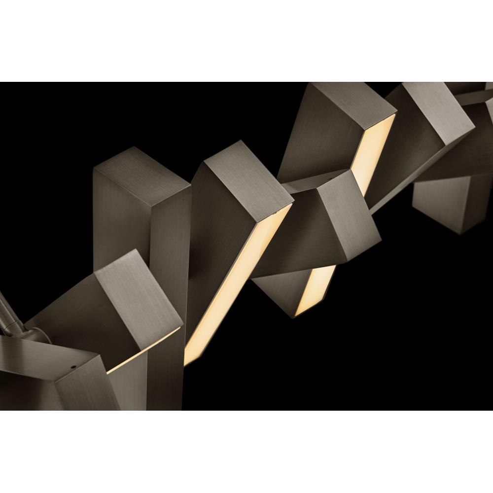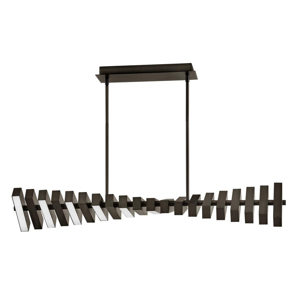 Stitch strikes a pose with an innovative design, offering bountiful illumination from articulating LED panels. This dynamic linear chandelier is a modern sculptural statement available in Black Oxide or Lacquered Brass finishes.