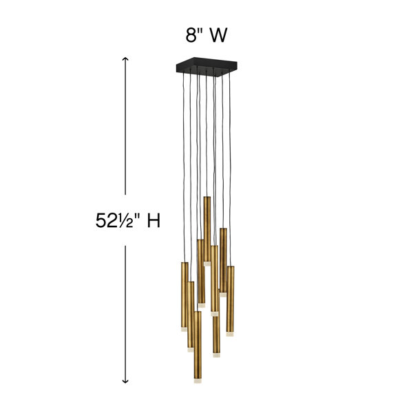 Harmony orchestrates the perfect blend of style and technology. Drawing inspiration from the enduring formation of wind chimes, the sleek black or heritage brass tubes gleams with a glow that emanates from the lowest point of each column. This pendant light is easily adjustable with many customizable configurations and is integrated with fully dimmable LEDs.