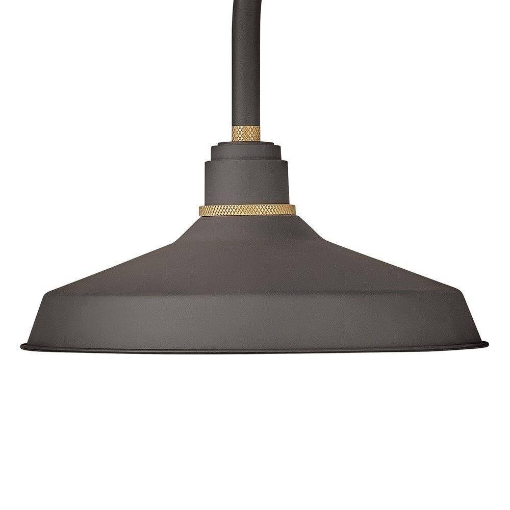 Decidedly industrious, Foundry reinvents purposeful lighting. Focused and direct, the sturdy aluminum shade features knurled brass details to offset a variety of finish options while casting a uniform light. The simple, understated form plants a vintage aesthetic for both inside and outside spaces while offering mix and match options that customize the look.Suitable for use in wet (outdoor direct rain or sprinkler) locations as defined by NEC and CEC. Meets United States UL Underwriters Laboratories & CSA Canadian Standards Association Product Safety Standards / Classic lines and heritage details complement traditional architecture / 2 year finish warranty / Bold and robust dark bronze finish / Mounting hardware is hidden on the backplate to ensure a clean silhouette / Fixture is Dark Sky compliant and engineered to minimize light glare upward into the night sky