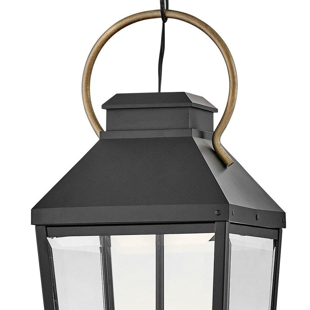 Dawson flaunts a versatile design with flair. A slightly tapered silhouette reveals simple lines that seamlessly frame clear beveled glass. Constructed of durable aluminum in Black, Dawson is complete with an oversized arching handle in a contrasting Burnished Bronze finish, reinforcing its transitional appeal.Suitable for use in damp locations as defined by NEC and CEC. Meets United States UL Underwriters Laboratories & CSA Canadian Standards Association Product Safety Standards / Striking black finish enhances design / 2 year finish warranty / Ideal for vintage filament bulbs (not included) / Sophisticated and streamlined design, durable construction and timeless finish complement any architectural style