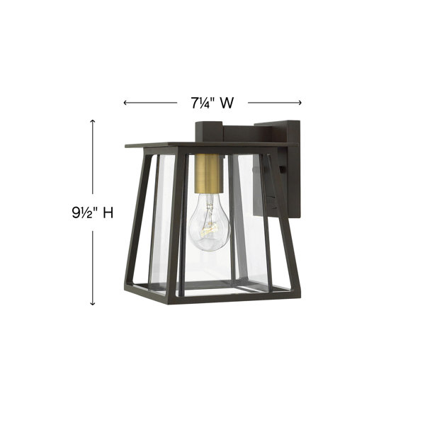 This design has roots in the American West with its large scale, strong angular lines, and no-nonsense style. The sturdy aluminum and brass construction features a finish of bold buckeye bronze and heritage brass. A welded outer form frames an inner clear, bound glass shade.