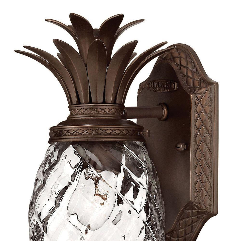 A Hinkley classic, the ornate Plantation collection features exceptional pineapple-shaped elements that make a noble statement. With elaborate, decorative cast detailing, the Plantation collection bestows sophisticated charm with the perfect hint of vintage glamour.Suitable for use in wet (outdoor direct rain or sprinkler) locations as defined by NEC and CEC. Meets United States UL Underwriters Laboratories & CSA Canadian Standards Association Product Safety Standards / Classic lines and heritage details complement traditional architecture / 2 year finish warranty / Bold and robust dark bronze finish