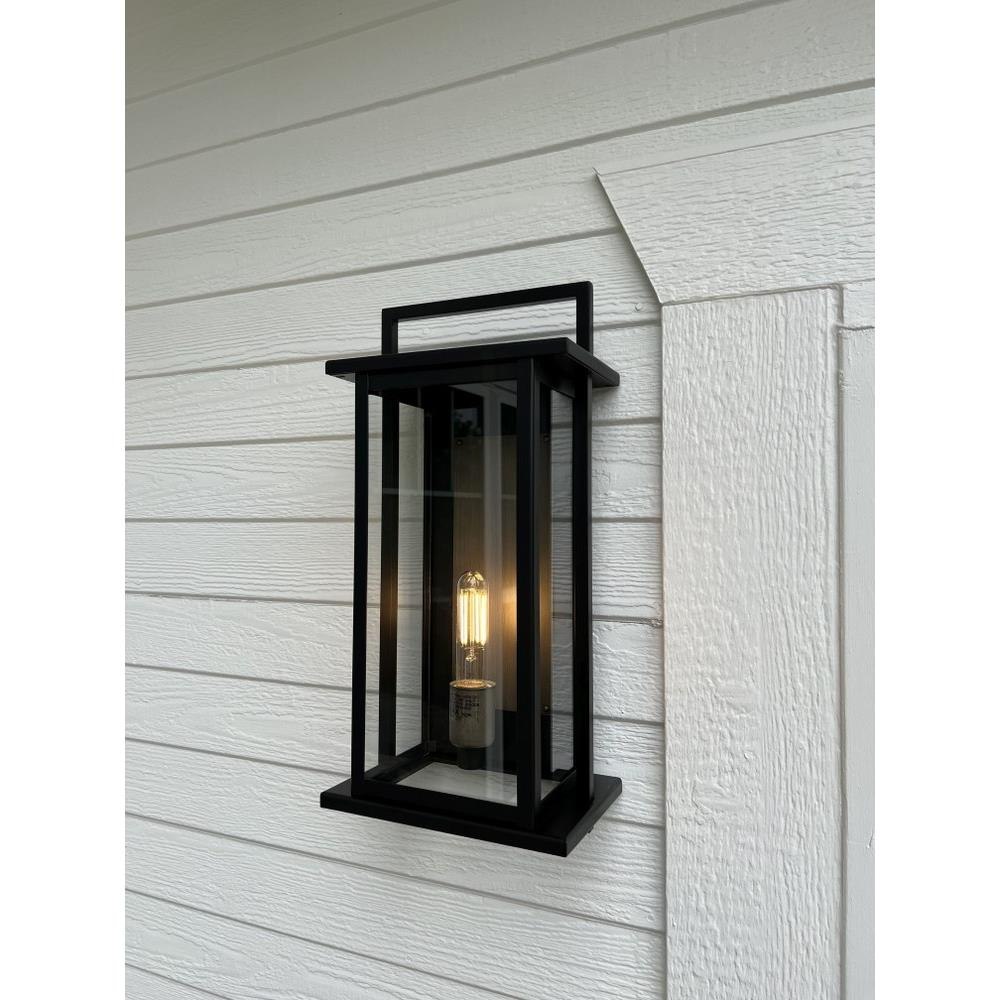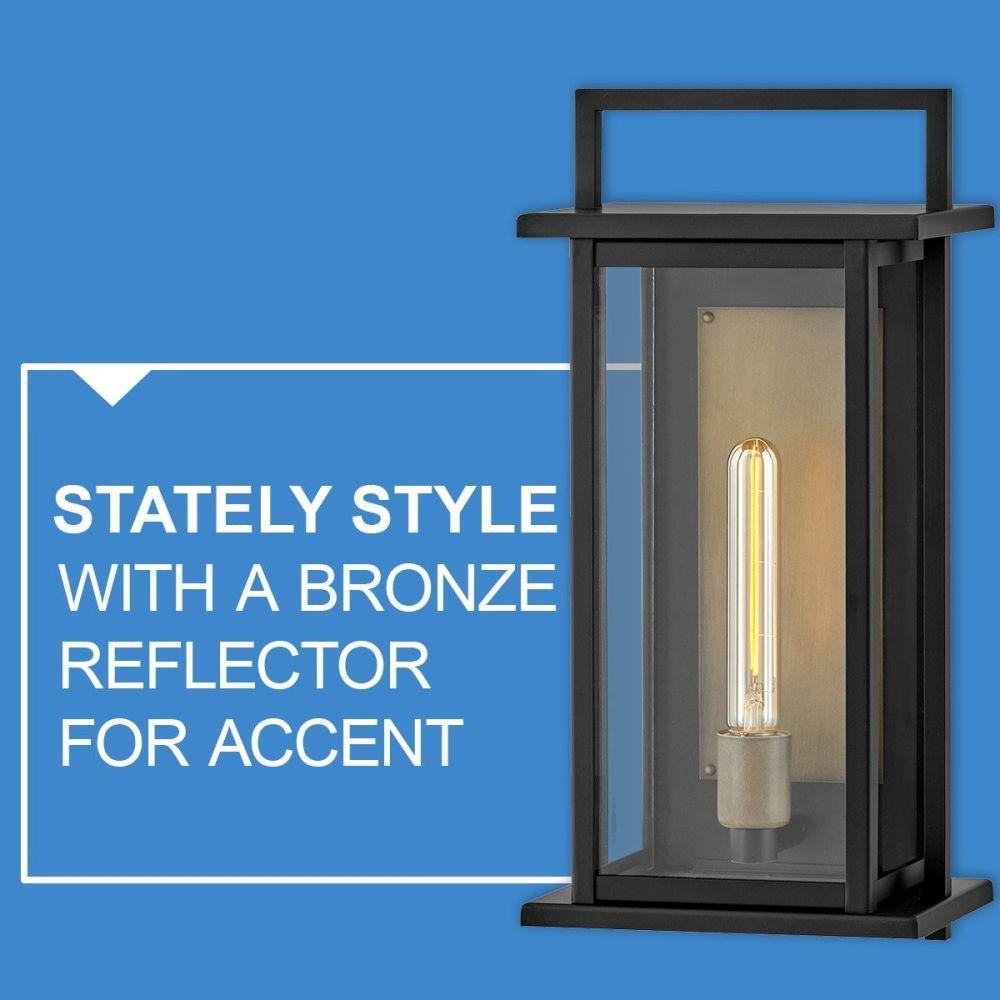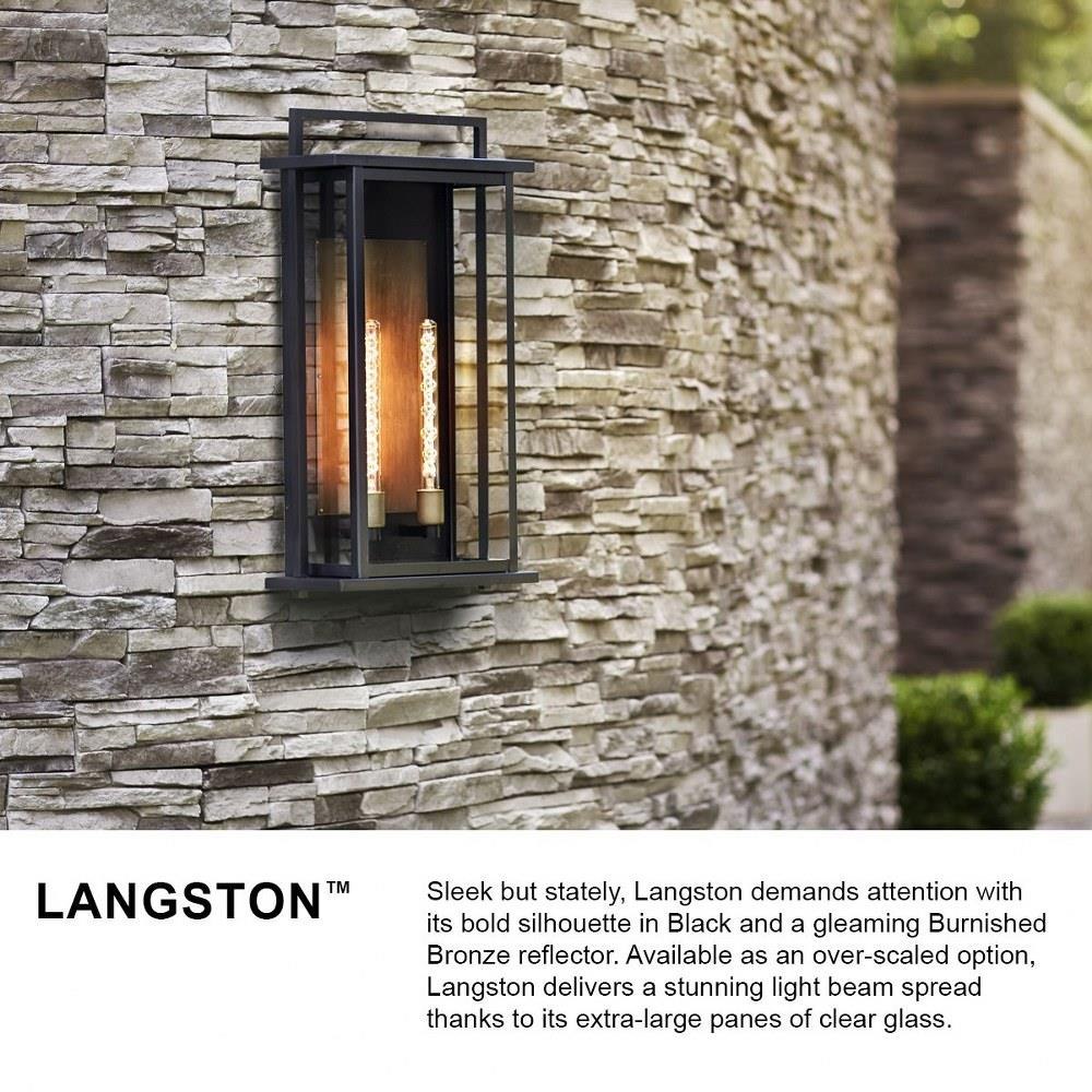 Sleek but stately, Langston demands attention with its bold silhouette in Black and a gleaming Burnished Bronze reflector. Available as an over-scaled option, Langston delivers a stunning light beam spread thanks to its extra-large panes of clear glass.Suitable for use in wet (outdoor direct rain or sprinkler) locations as defined by NEC and CEC. Meets United States UL Underwriters Laboratories & CSA Canadian Standards Association Product Safety Standards / Classic lines and heritage details complement traditional architecture / Striking black finish enhances design / 2 year finish warranty / Ideal for vintage filament bulbs (not included) / Mounting hardware is hidden on the backplate to ensure a clean silhouette