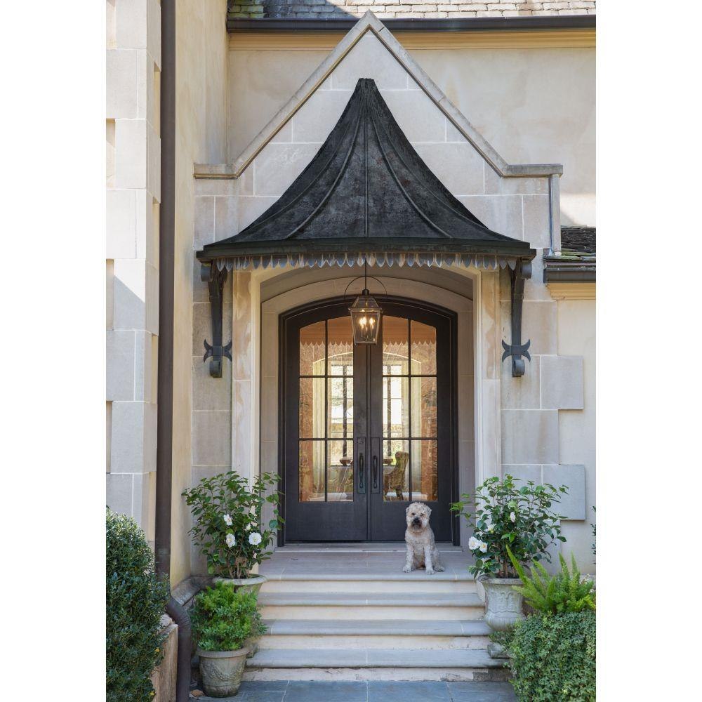 A standout in the Heritage Collection, Nouvelle redefines outdoor heritage. Handcrafted of solid brass, Nouvelle's construction evokes timeless vigor enhancing the appearance of a range of facades, from French Traditional to Modern. Nouvelle's Blackened Brass cage stands out among its slightly tapered, four-sided glass panels to reinforce its simple charm.This fixture includes multiple down stems in various lengths to customize the installation height of the fixture, including one 6" stem and two 12" stems. / Suitable for use in damp locations as defined by NEC and CEC. Meets United States UL Underwriters Laboratories & CSA Canadian Standards Association Product Safety Standards / This stem hung fixture may be hung on a sloped ceiling / Classic lines and heritage details complement traditional architecture / 2 year finish warranty / Rich dark brass finish