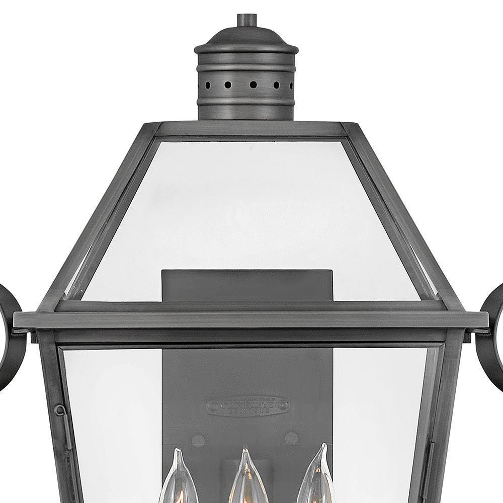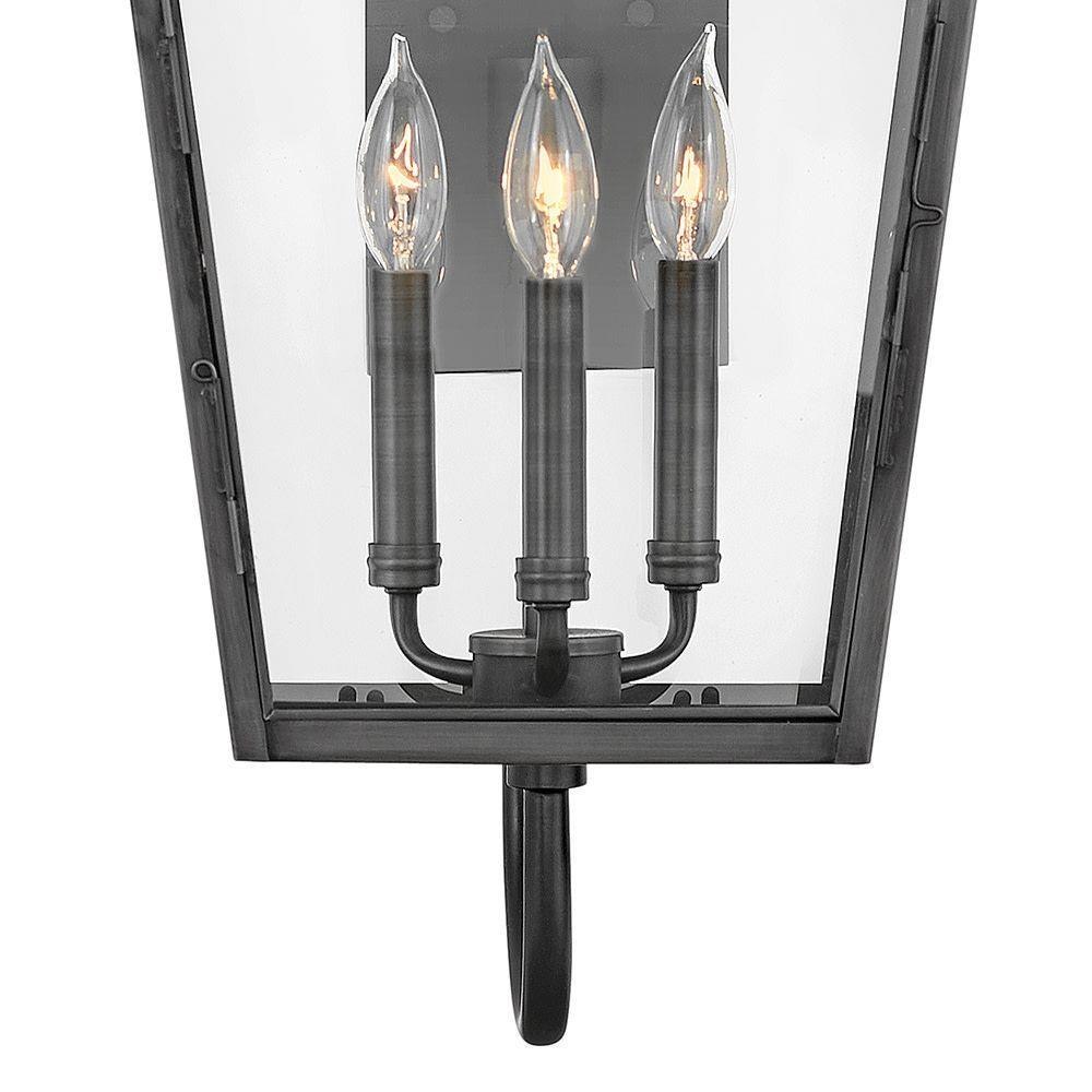 A standout in the Heritage Collection, Nouvelle redefines outdoor heritage. Handcrafted of solid brass, Nouvelle's construction evokes timeless vigor enhancing the appearance of a range of facades, from French Traditional to Modern. Nouvelle's Blackened Brass cage stands out among its slightly tapered, four-sided glass panels to reinforce its simple charm.Decorative scrollwork is reversible for right and left applications if desired. / Suitable for use in wet (outdoor direct rain or sprinkler) locations as defined by NEC and CEC. Meets United States UL Underwriters Laboratories & CSA Canadian Standards Association Product Safety Standards / Classic lines and heritage details complement traditional architecture / 2 year finish warranty / Rich dark brass finish