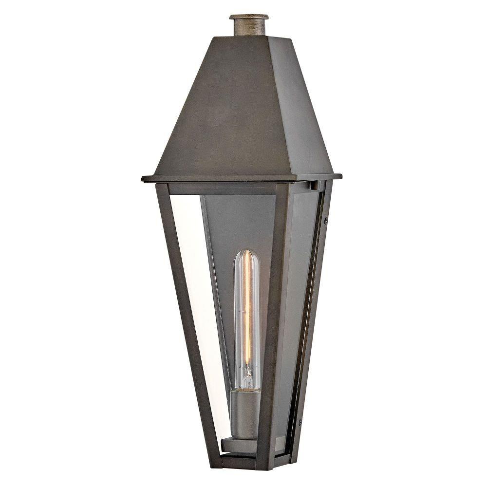 Endsley’s stately, modern gas lantern design features an oversized roof with a simple chimney, complemented by tall, clear glass and a painted, artisanal Blackened Brass finish. Each dignified fixture embraces traditional architectural details yet feels right at home in contemporary outdoor spaces.