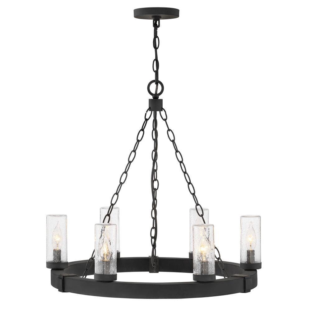 Hinkley Lighting - 29206BK - Sawyer - 30W 6 LED Outdoor Medium Hanging Lantern In Rustic Style-23.25 Inches Tall and 24 Inches Wide