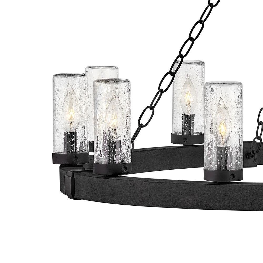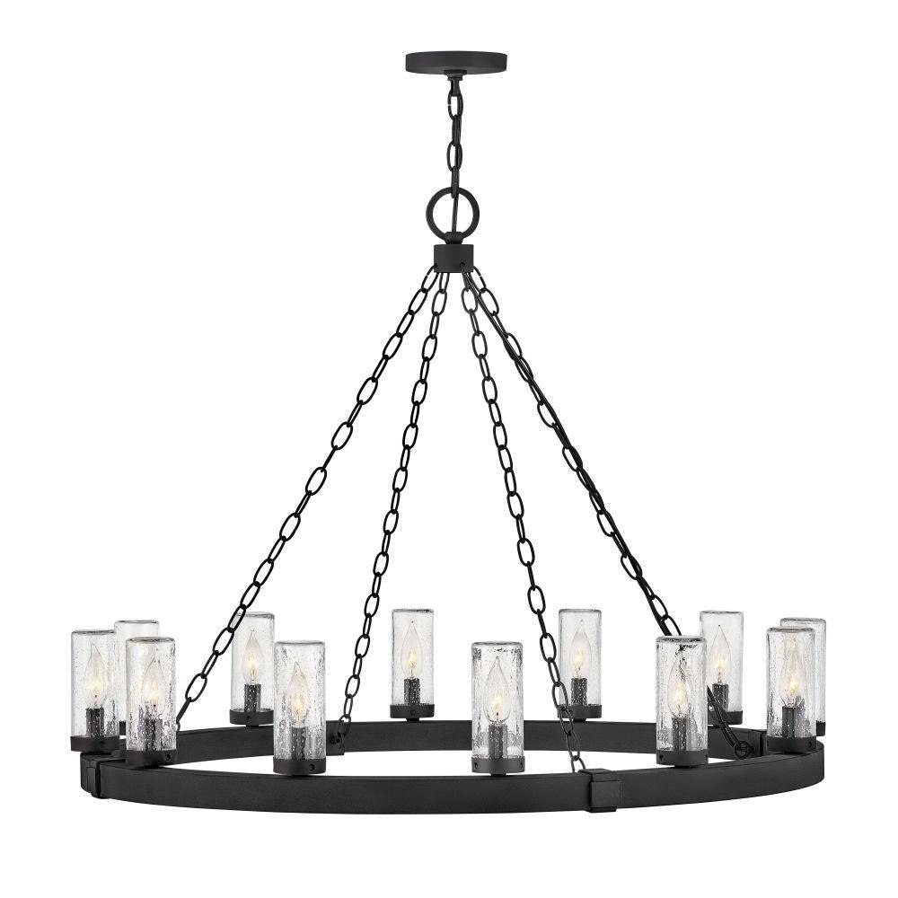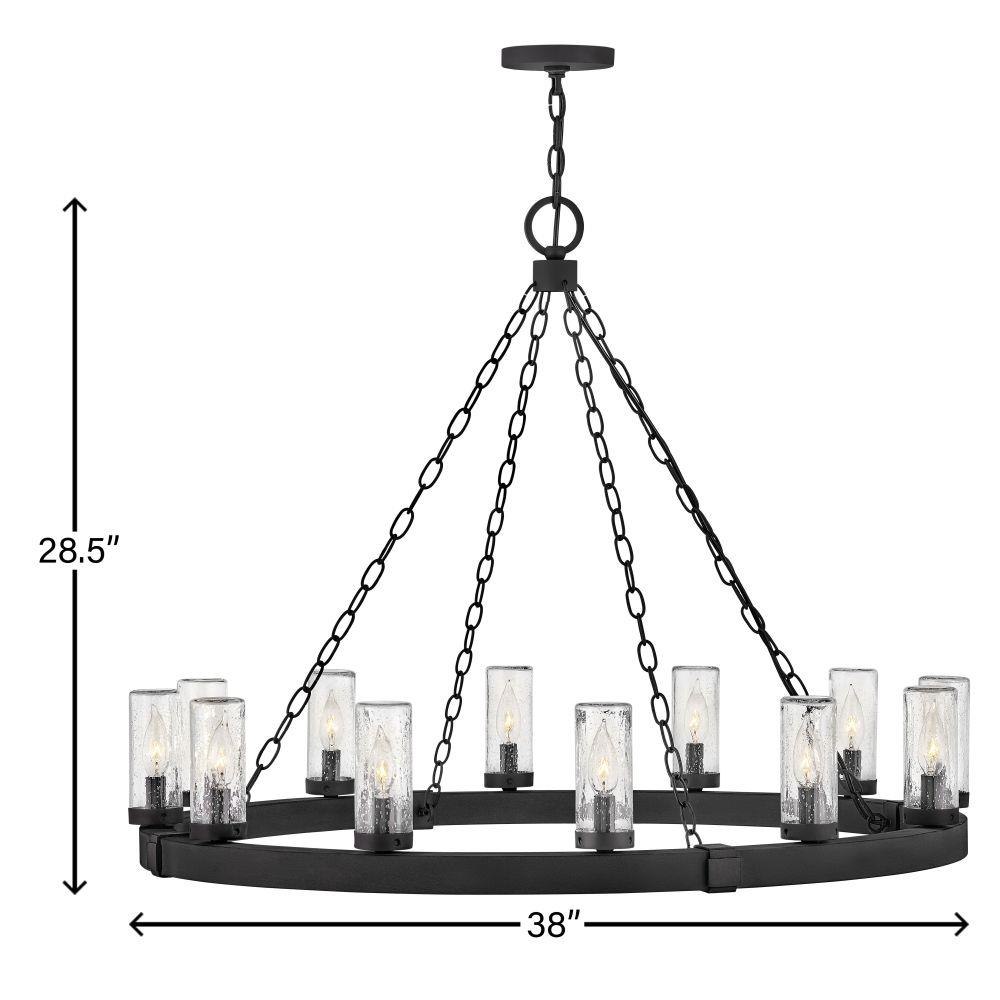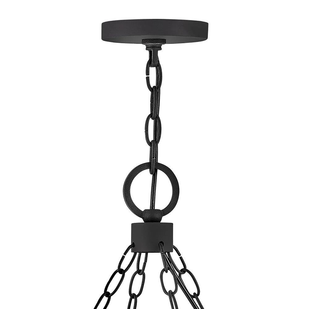The fresh, rustic design of the Sawyer collection will inject any outdoor living experience with the warm, cozy ambiance of an indoor setting. Constructed with Hinkley's own anti-corrosion coating, Sawyer ensures maximum resiliency and performance in the elements.This chain or cable hung fixture may be installed on any sloped ceiling / Suitable for use in wet (outdoor direct rain or sprinkler) locations as defined by NEC and CEC. Meets United States UL Underwriters Laboratories & CSA Canadian Standards Association Product Safety Standards / Rustic elements with bold, refined details complement a variety of facades from farmhouse to contemporary architecture / The stylish Open Air collection includes outdoor-rated chandeliers, pendants and sconces that provide design-conscious solutions to a variety of exterior environments. / Striking black finish enhances design / 2 year finish warranty / Ideal for vintage filament bulbs (not included)