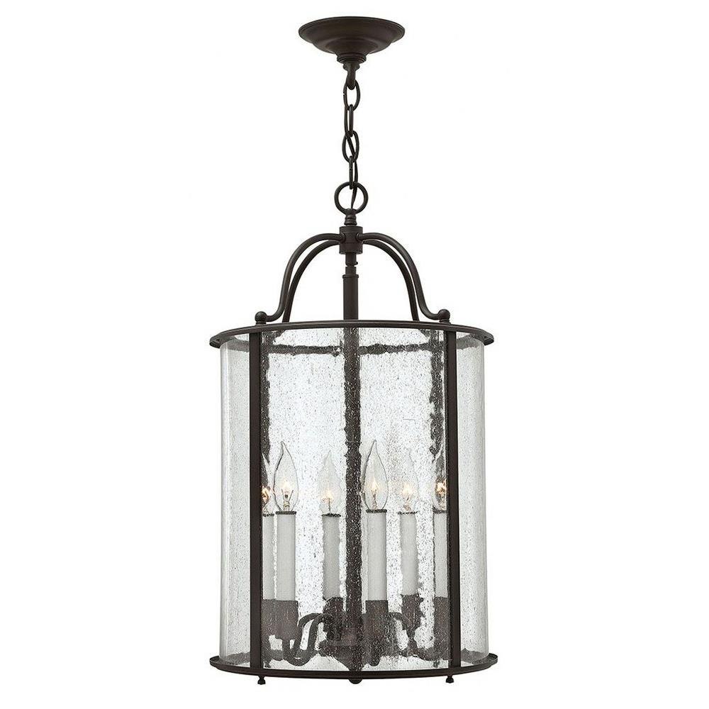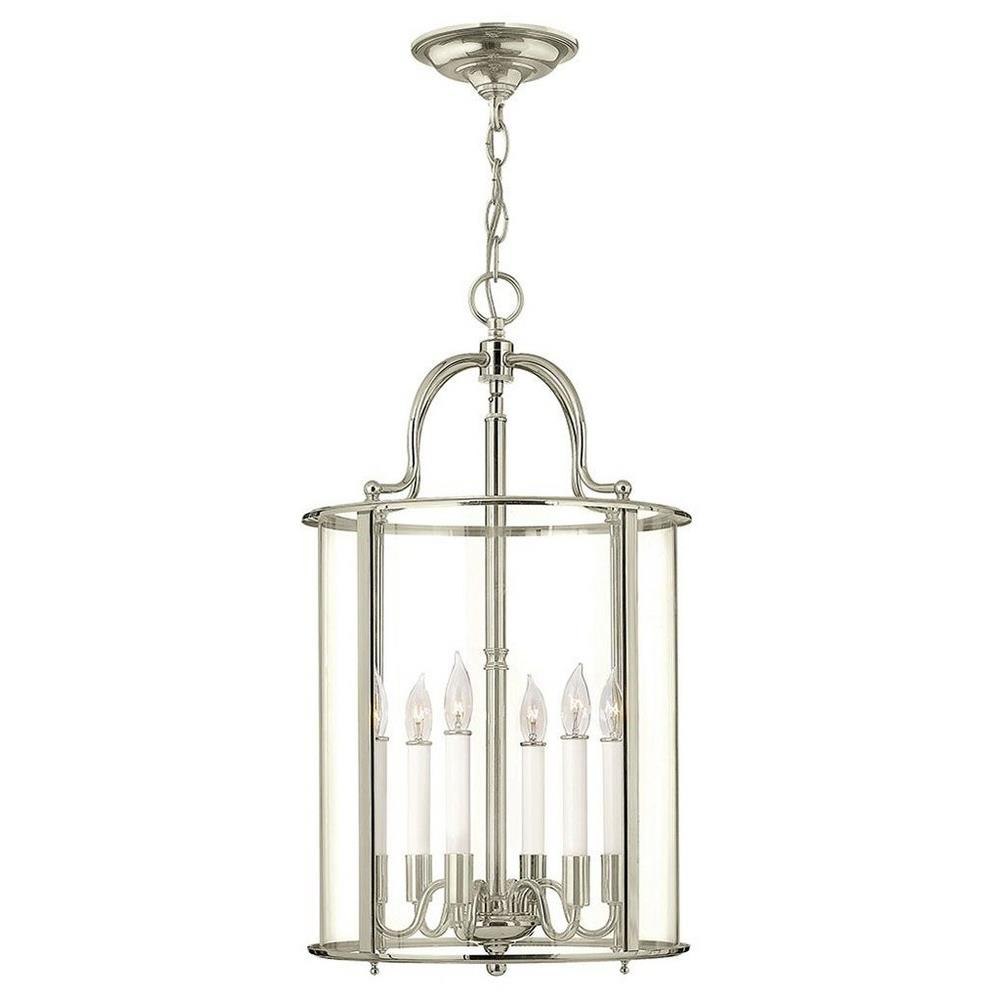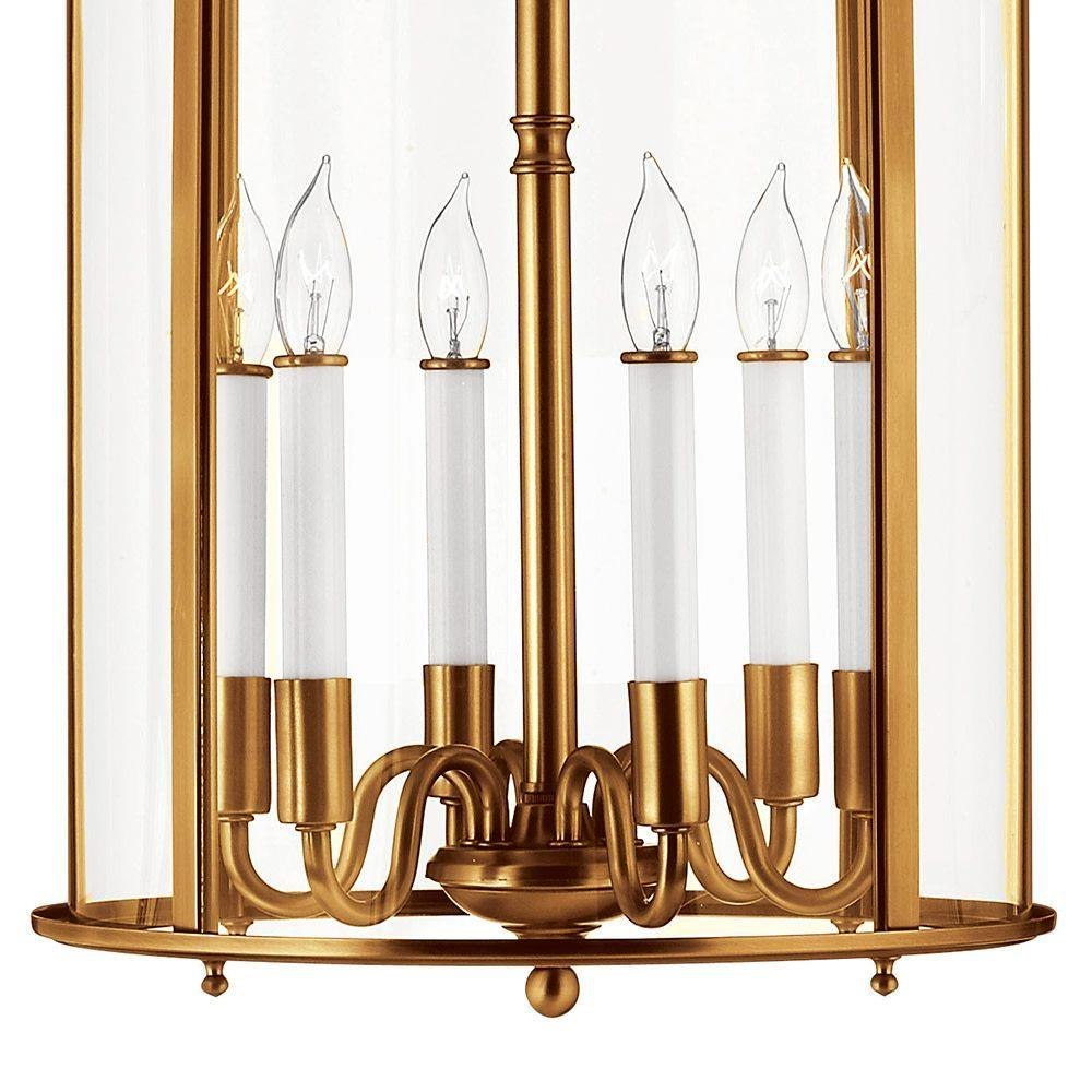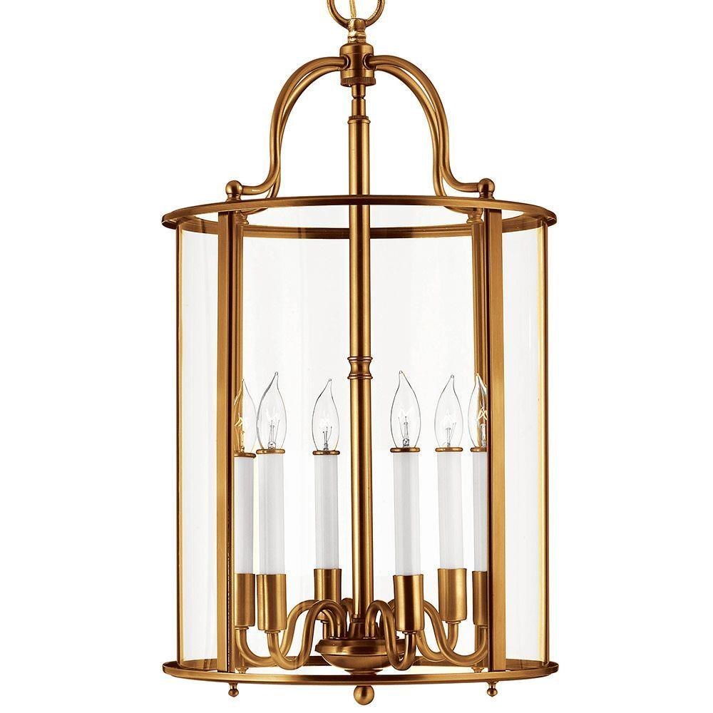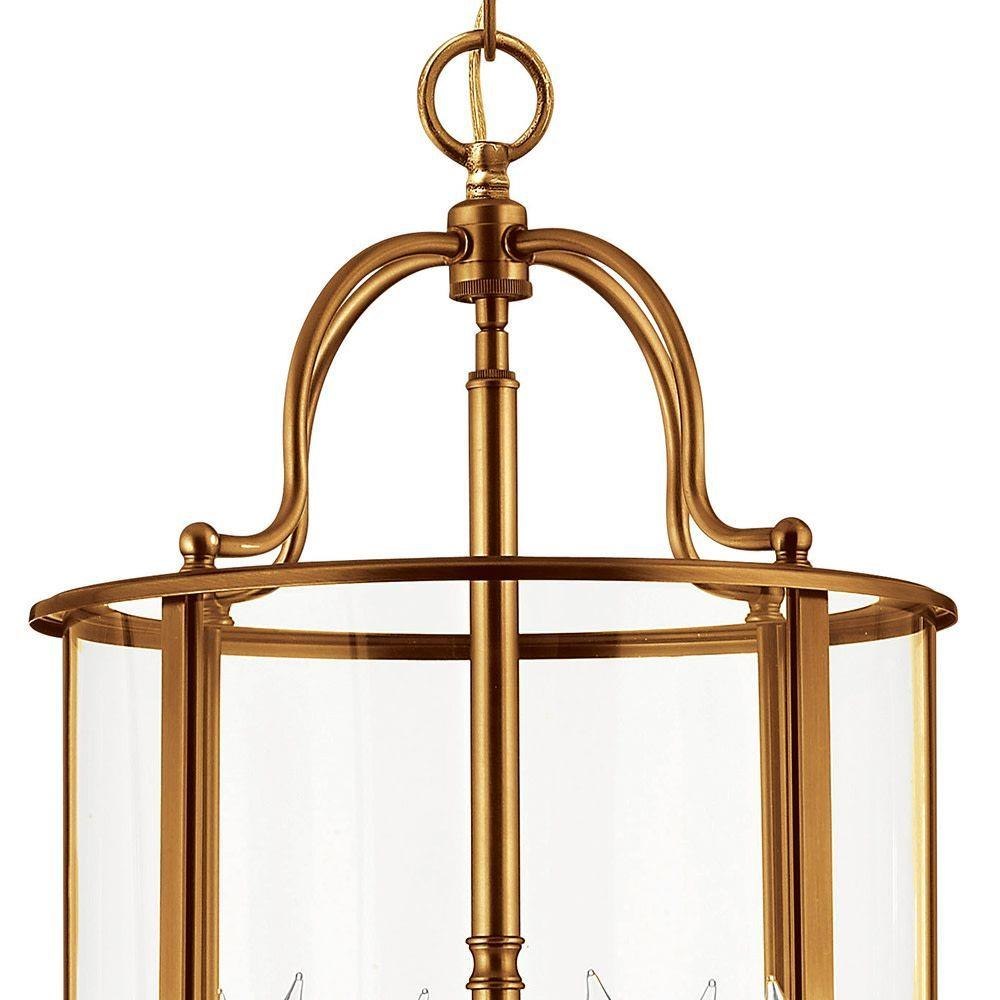 Gentry's traditional design is offered in three classic finishes, Heirloom Brass, Olde Bronze and Polished Nickel. The bent glass panels and candlestick design element add classic elegance to this timeless style.Suitable for use in dry (indoor) locations as defined by NEC and CEC. Meets United States UL Underwriters Laboratories & CSA Canadian Standards Association Product Safety Standards / This chain or cable hung fixture may be installed on any sloped ceiling / Classic, elegant lines and timeless details enhance a traditional space / Rich dark brass finish