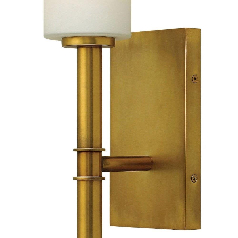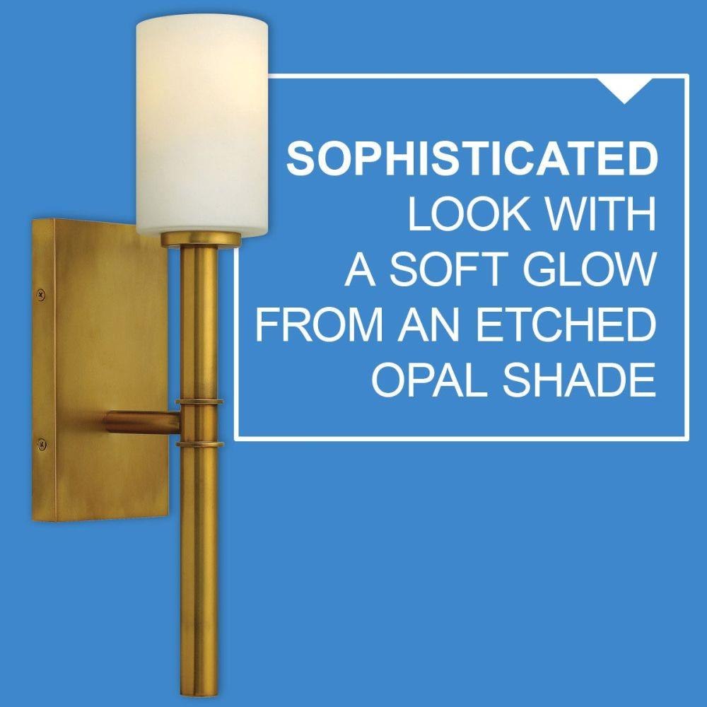 Margeaux's transitional style and formal presence are reinforced by cast transitional raised double ring details and etched opal shades that emit a soft glow.Suitable for use in dry (indoor) locations as defined by NEC and CEC. Meets United States UL Underwriters Laboratories & CSA Canadian Standards Association Product Safety Standards / Classic gleaming light brass finish / Distinctive mid-century modern elements merge with sleek and timeless forms for a vintage vibe with modern flair / Mounting hardware is hidden on the backplate to ensure a clean silhouette