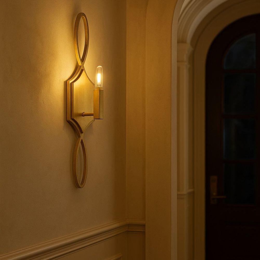 Leona’s decorative scrollwork is crafted from a gently curved, smoothly welded frame finished in hand-leafed Distressed Brass. Clean shapes complemented by exposed candelabra lamps create a family of formal fixtures with undeniable charm.