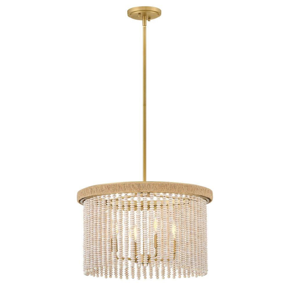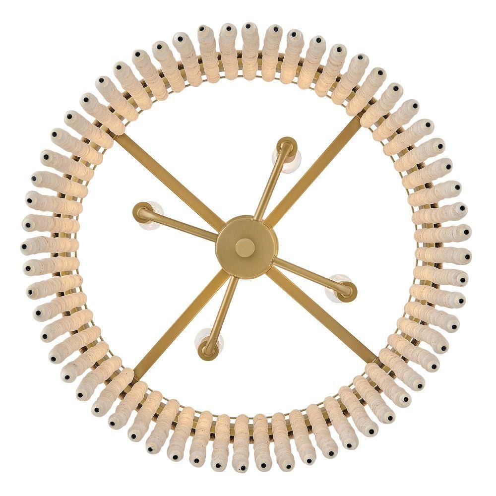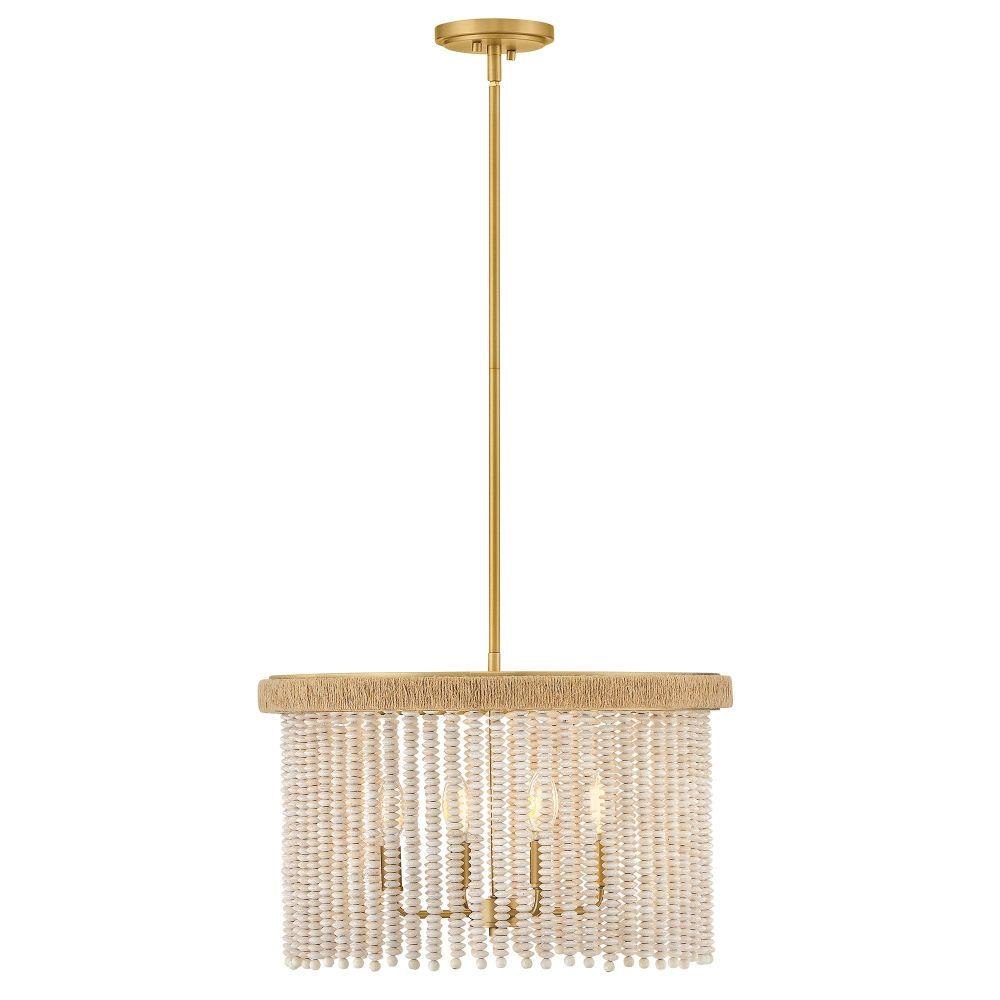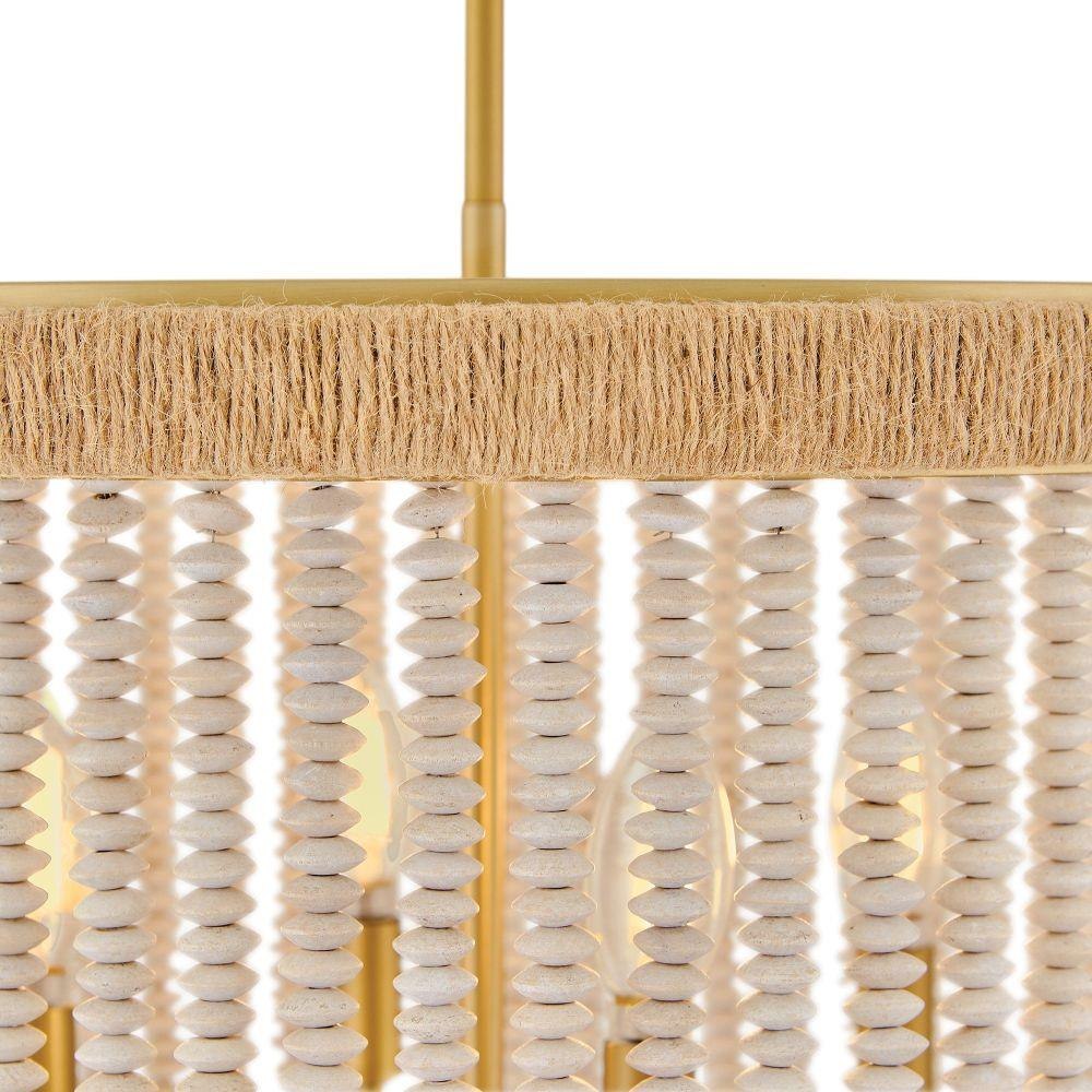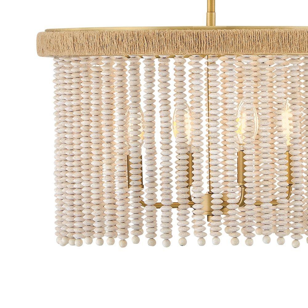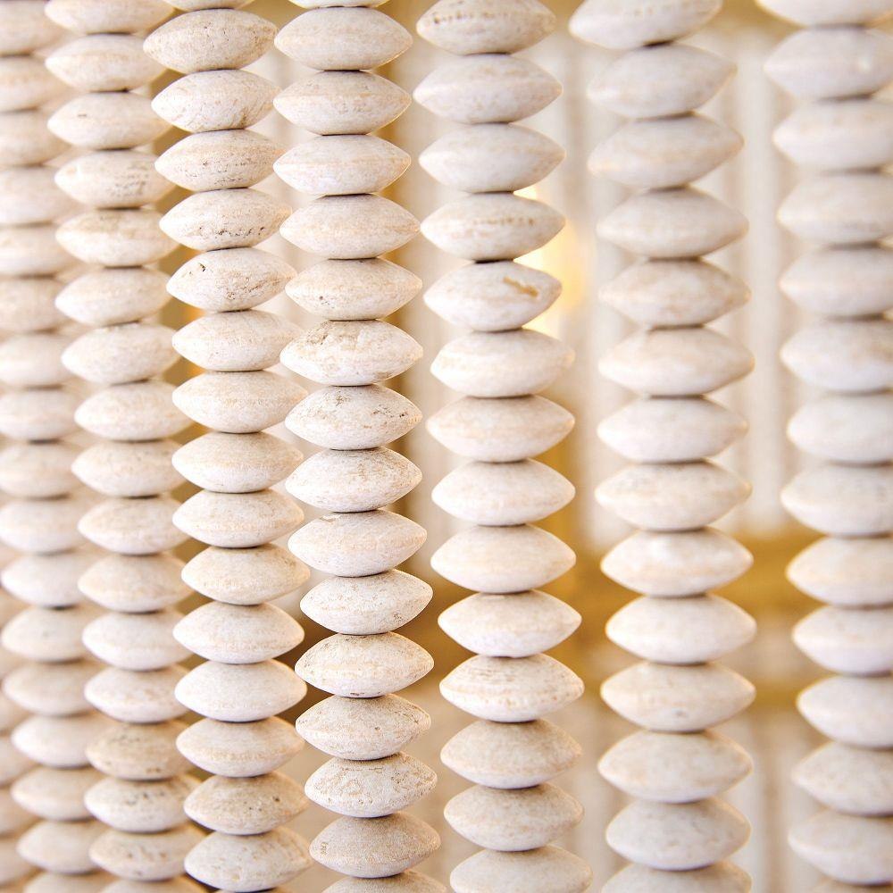 Indra blends coastal styling with an elegant transitional silhouette to fill your space with a naturally inspired atmosphere. A hand-strung curtain of stacked, taupe wooden beads diffuses warm illumination, while a frame hand-wrapped in natural fiber jute rope adds a touch of organic texture to your décor.