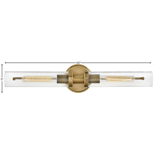 This Industrial-style Two-Light Bath Vanity fixture features a streamlined design combining modern and vintage elements for a refined look. A pair of clear glass cylindrical shades fit around opposing diamond-knurled sockets, extending from the backplate. Illuminated by T-style bulbs (not included), this unique light fixture can be mounted vertically or horizontally. Damp-rated for bathrooms and ensuites, this light is a stylish light anywhere in your home.