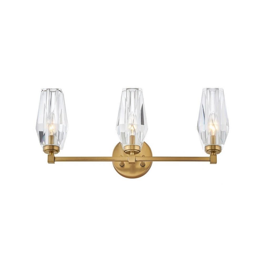 This fixture must be installed with shades/glass facing up toward the ceiling. / Striking and glamorous silhouette with luxe details and a rich finish makes a dramatic statement / Classic gleaming light brass finish / Suitable for use in damp locations as defined by NEC and CEC. Meets United States UL Underwriters Laboratories & CSA Canadian Standards Association Product Safety Standards