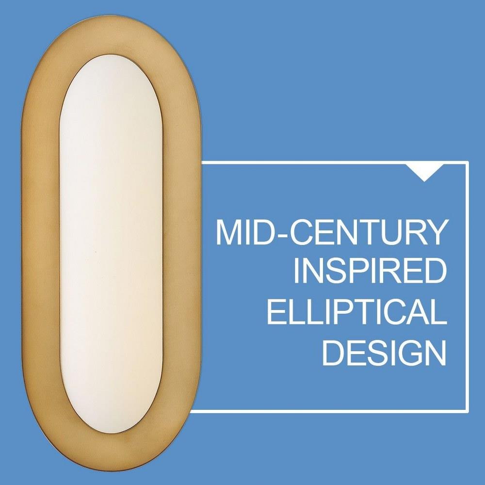 Beautifully retro, Emme showcases a midcentury-inspired elliptical design. Etched opal glass surrounded by a robust, oversized frame creates a vintage feel and soft, warm illumination. Versatile sconce silhouettes feature concealed on/off switches and removable cords to complement any bathroom, kitchen, or living space.