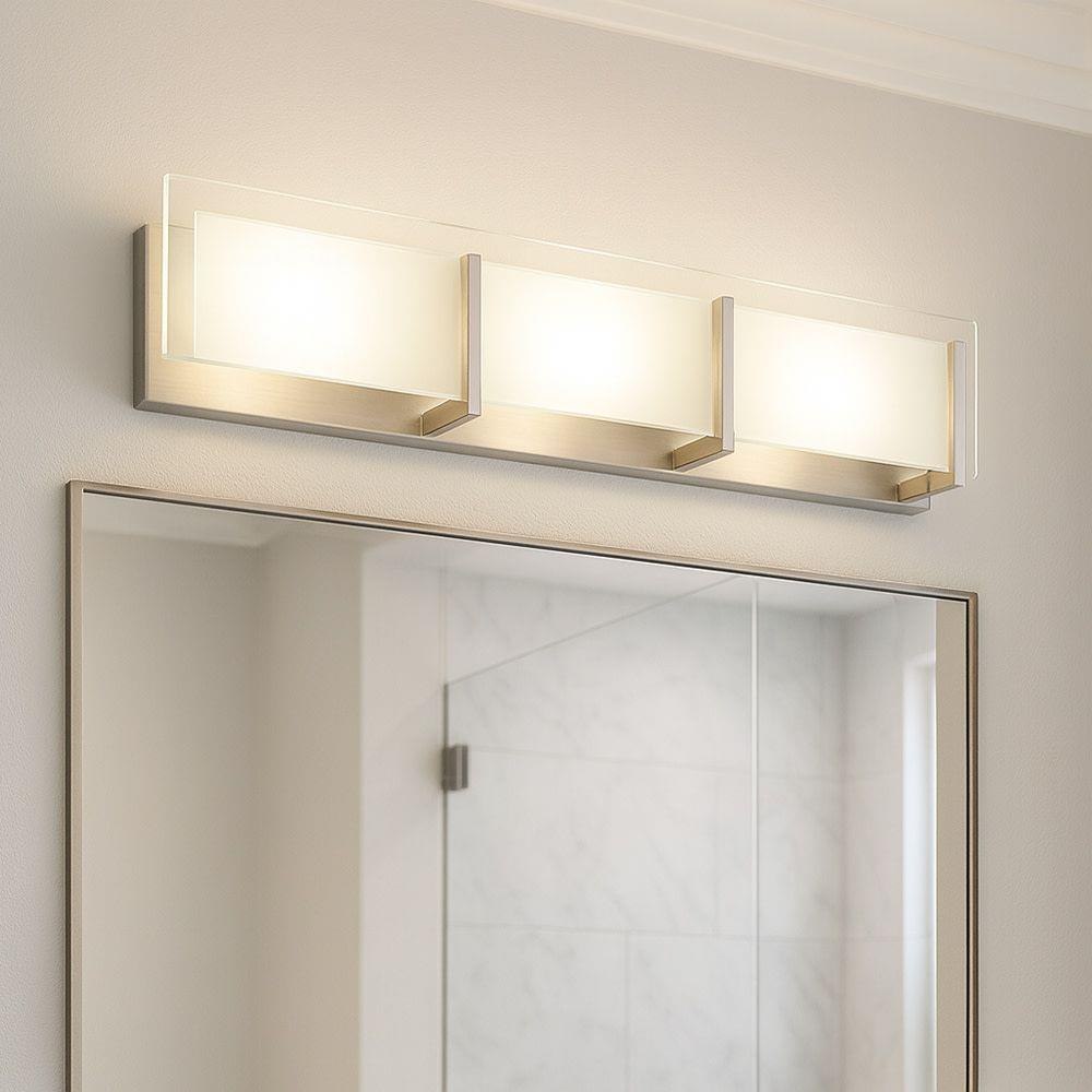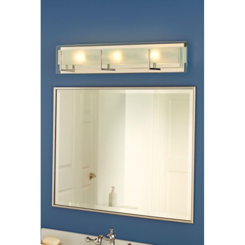 This fixture must be installed with shades/glass facing up toward the ceiling. / Suitable for use in damp locations as defined by NEC and CEC. Meets United States UL Underwriters Laboratories & CSA Canadian Standards Association Product Safety Standards / Fixture is ADA compliant and adheres to the standards and guidelines listed by the Americans with Disabilities Act / Classic matte brushed nickel finish / Mounting hardware is hidden on the backplate to ensure a clean silhouette / Bold lines and a clean, minimalist style creates a modern look