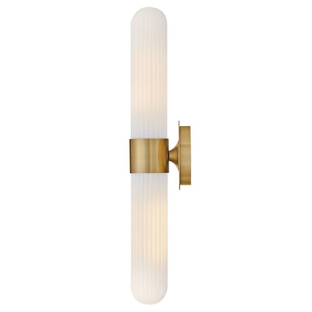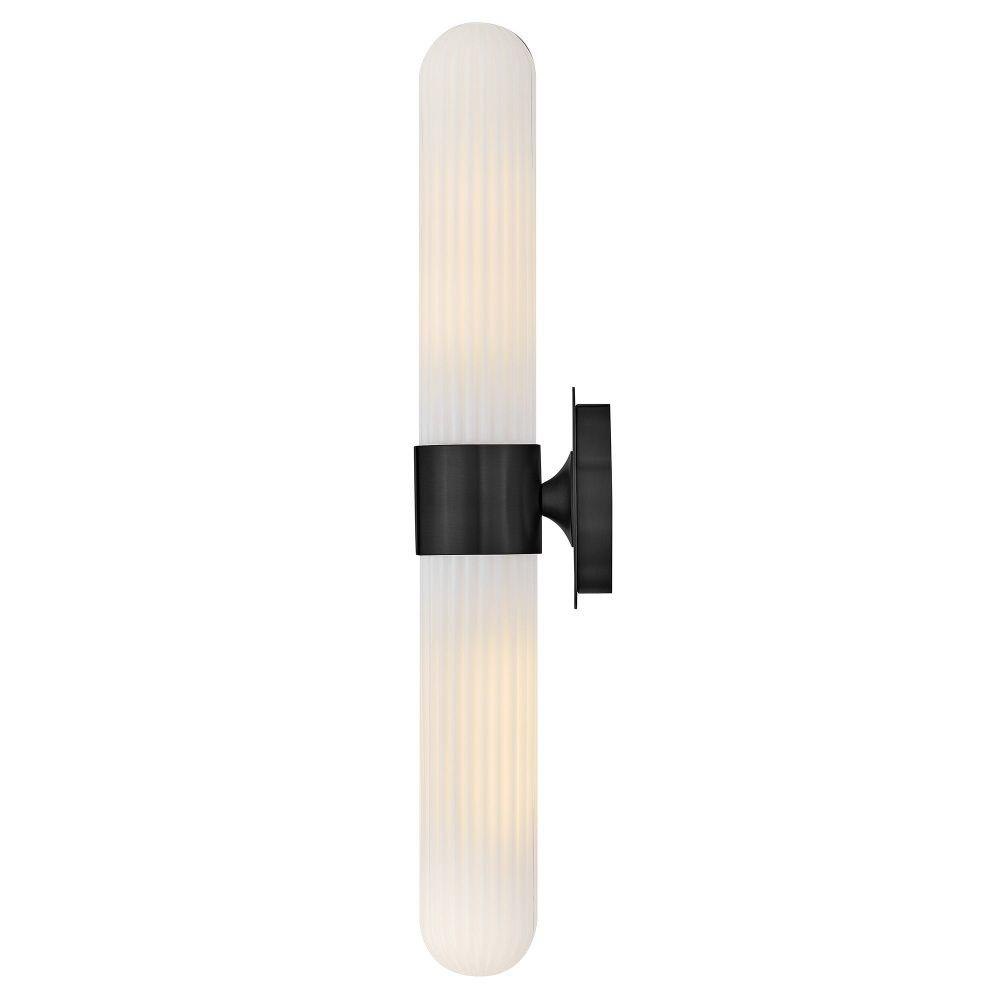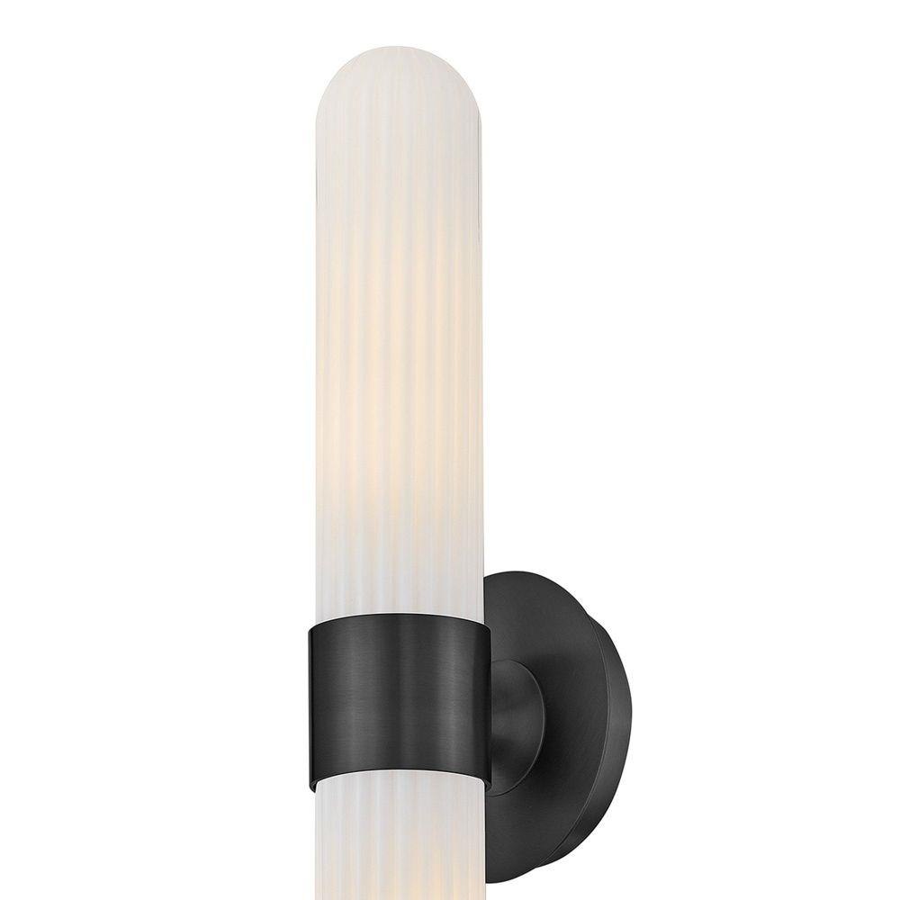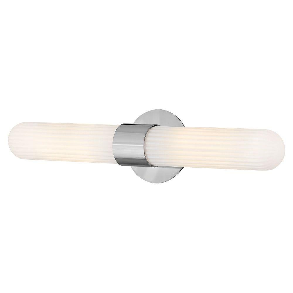 Blending transitional modern style with plenty of functional illumination, Nina is crafted to add a timeless accent to your bath or living space. Rounded Cased Opal glass shades with ribbed detailing glow beautifully, casting warm, even light throughout the surrounding room. A metal backplate and flared arm are finished in Black, Chrome, or Lacquered Brass to complement any décor effortlessly.