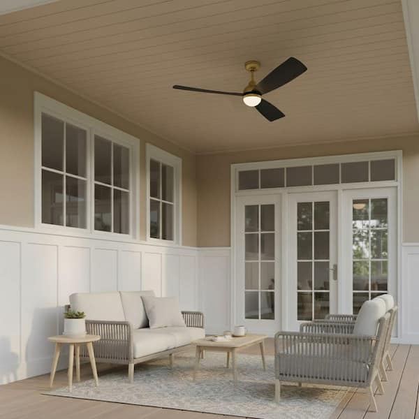 UNA 56.0 in. Integrated LED Indoor/Outdoor Heritage Brass Ceiling Fan with Remote Control