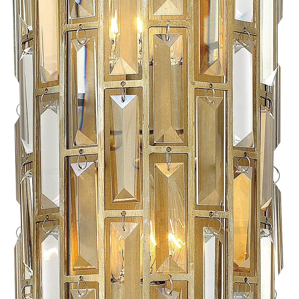 Gemma is a contemporary chandelier collection with stunning rectangular prisms of amber pearl and clear crystal set within a frame of Vintage Bronze or Silver Leaf to create a seamless sparkling, jewelry-like effect.