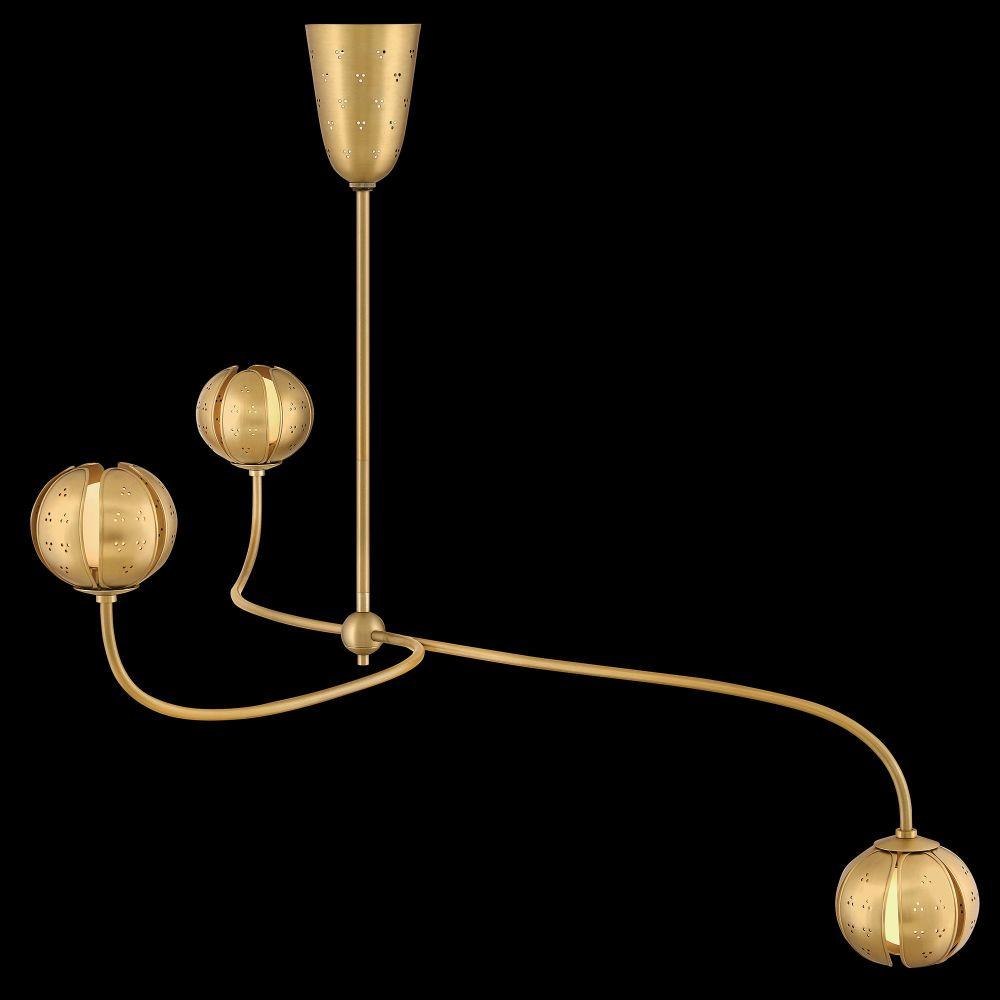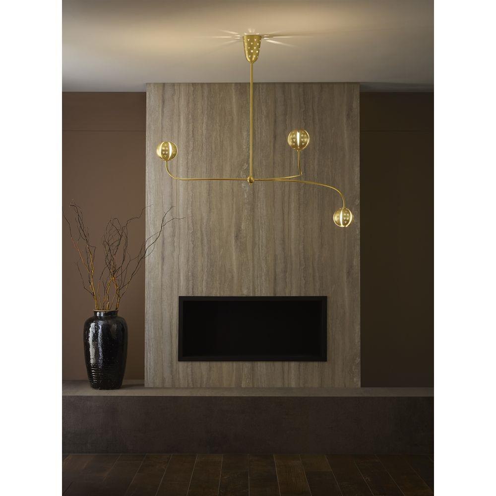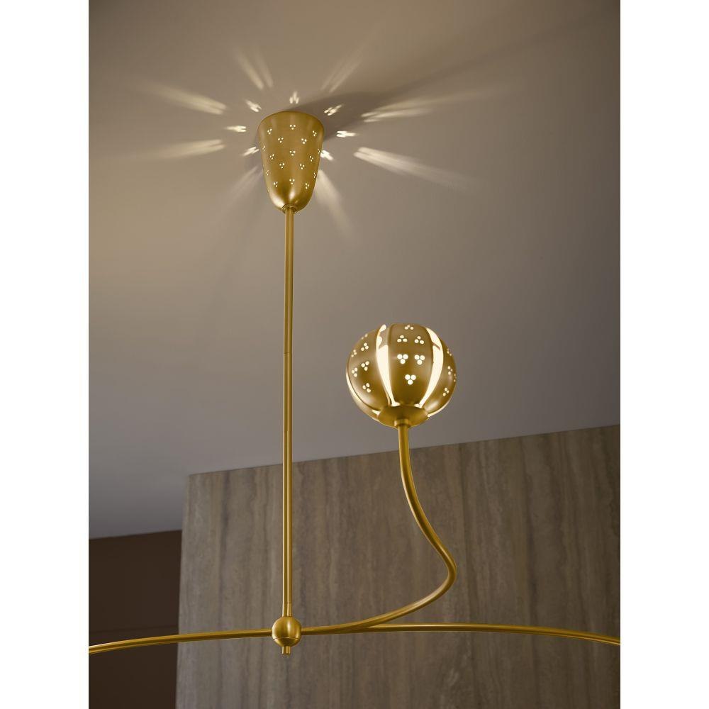 A work of luminary art, Anthos elevates its floral-inspired form with alluring illumination. Raised edge details and distinct perforations accentuate each blossom crafted from solid unlacquered brass petals. Radiant LED lamps enveloped by blown etched opal glass transform the surrounding space with a captivating interplay of light and shadow.