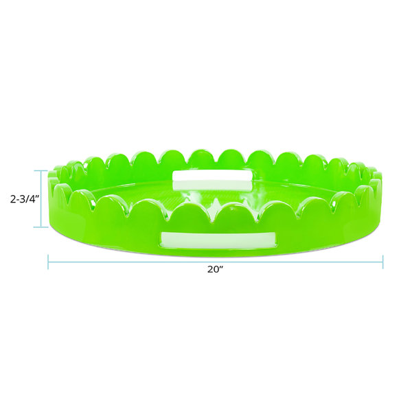 Part of our summers were spent in the coastal city of Nice on the beloved French Riviera. Each day was spent dining al fresco at the most enchanting small bistro's along the Rue Massena. The bright colored awnings with their scalloped front edges became the inspiration for our round lacquered Riviera scalloped tray in a stunning Azur. The double handled wooden tray is hand crafted and finished by skilled artisans. Each tray will become not only your favorite accessory for the summer but year round as they add that pop of color to any occasion. This tray is not food safe.