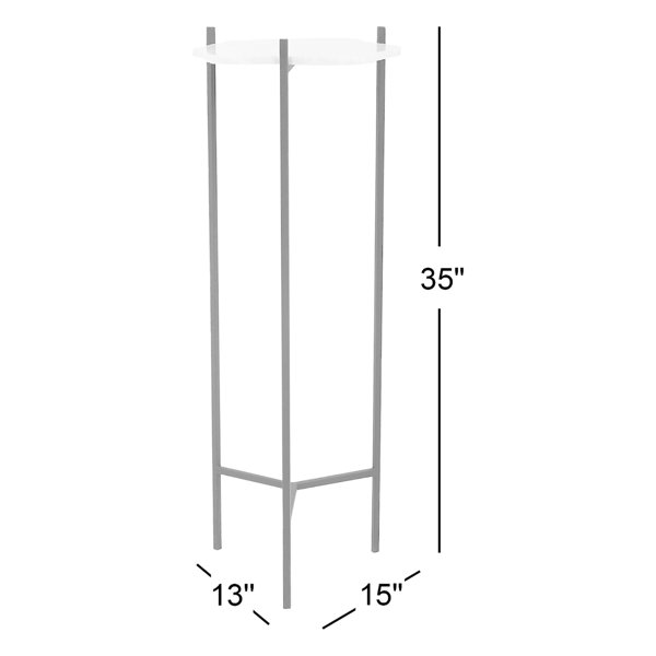 A modern twist on a traditional design, this end table brings mid-century style and a sleek silhouette to your living room or entryway. The minimal three-leg frame is crafted from iron with a matte black finish, and it's contrasted with a glossy white marble top. We love that the marble features a textured design on the sides for a just-cut look. The surface offers just enough space to display a succulent or accent piece in your entryway, reading area, or beside your sofa up to 15 lbs. Plus, this table measures 35" tall and 15" wide, so it's sure to make a statement wherever you place it.