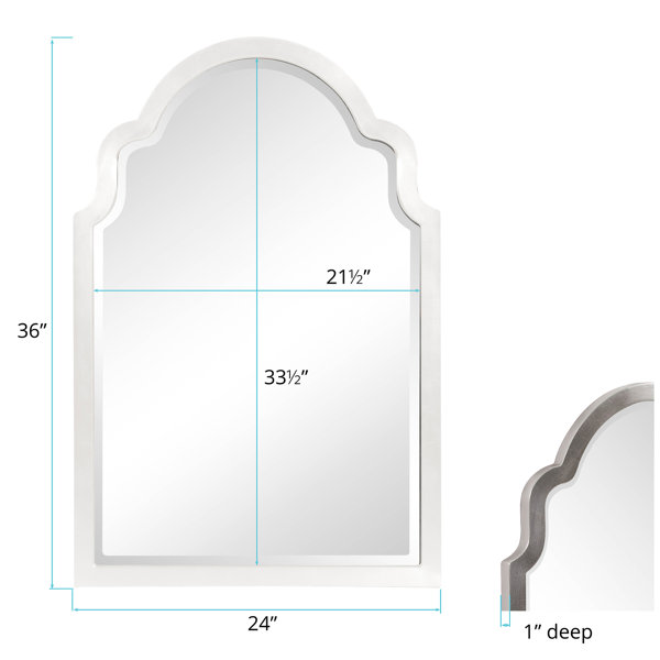Aside from making spaces appear larger, wall mirrors offer a tactful, stylish way to hide imperfections, maximize light, and provide a second look at your favorite accents. It is a perfect focal point for an entryway, bathroom, bedroom, or any room in your home. This archtop vertical wall mirror, for example, measures 36'' H x 24'' W x 1'' D and is framed with wood. This mirror is perfect for glam or traditional aesthetics. It can be hung above your mantle, as part of your gallery wall, near your entryway, and so much more. Mounting hooks are included for easy hanging.