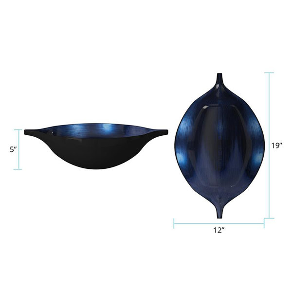 Bring a splash of color to your dining table, coffee table, or kitchen counter with this wood decorative bowl. It’s made of solid wood in a vivid cobalt blue color with black lacquered accents and features a generous 5” H x 19” W x 12” D size, and an oval shape that tapers off at the ends to form slim handles. This bowl is ideal for holding potpourri, seashells, river stones, or other decorative objects. It completes the look in any mid-century modern or contemporary space.