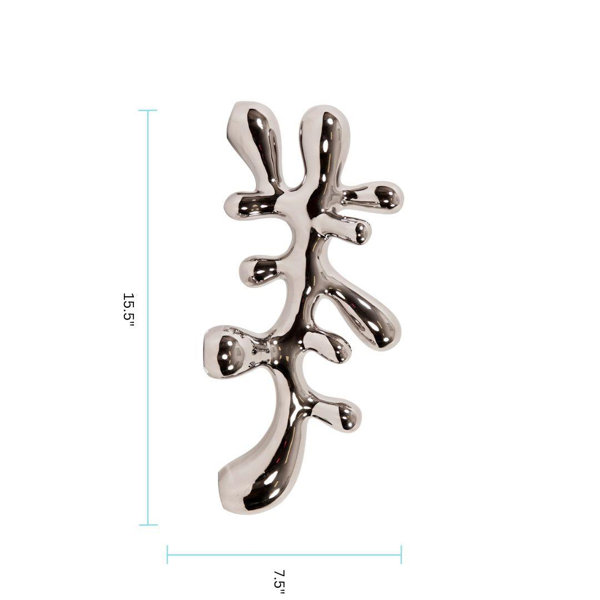 This geometric, ceramic sculpture has an almost liquid quality to its shape for plenty of movement and visual interest. It's machine-made with a metallic silver finish for a mid-century modern look we love. The surface is also mirrored to bounce natural light around your space, enhancing its surroundings. This abstract sculpture measures 7.5" tall and 15.5" wide, so it makes a statement while retaining a minimal footprint. Use it as a centerpiece on your dining room table or display it on an open shelf anywhere you want.