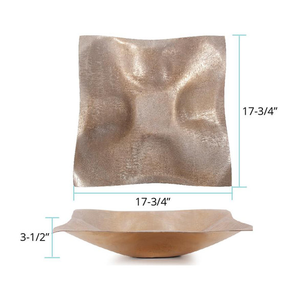 Beautifully forged and crafted by hand, the intricate etched crossway pattern helps to bring each shape to life with added dimension and texture. The wavy edged large bowl in a lusterous champagne finish makes a great accent piece all alone or filled with a few of your favorite little treasures.